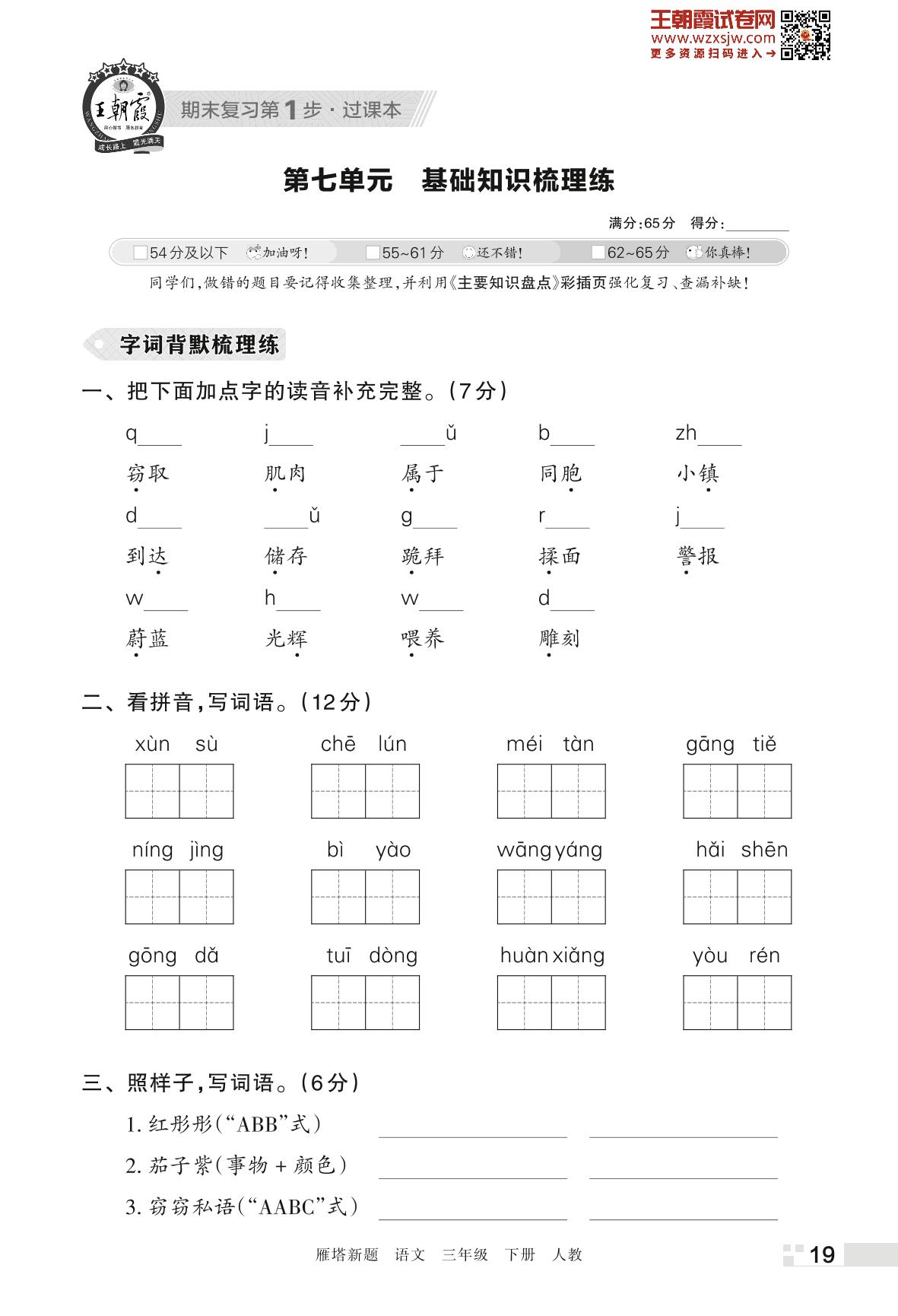 王朝霞期末过课本——第七单元 基础知识梳理练三年级下册语文(人教版)_R230425141731980