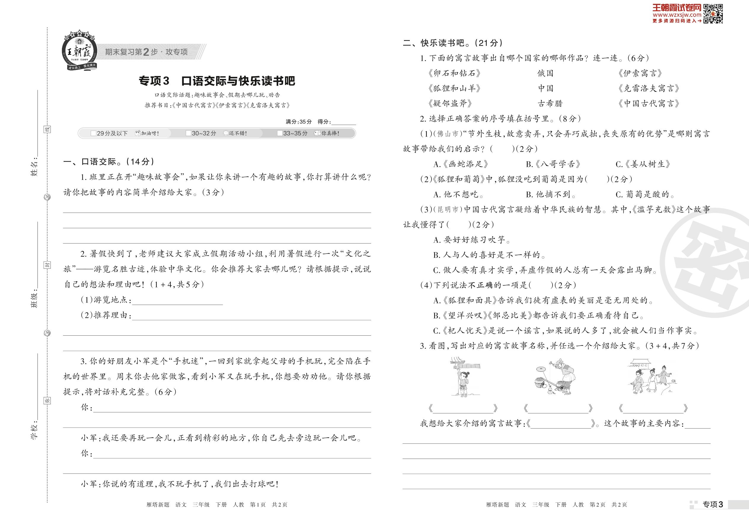 王朝霞期末专项卷——口语交际与快乐读书吧三年级下册语文(人教版)【3】