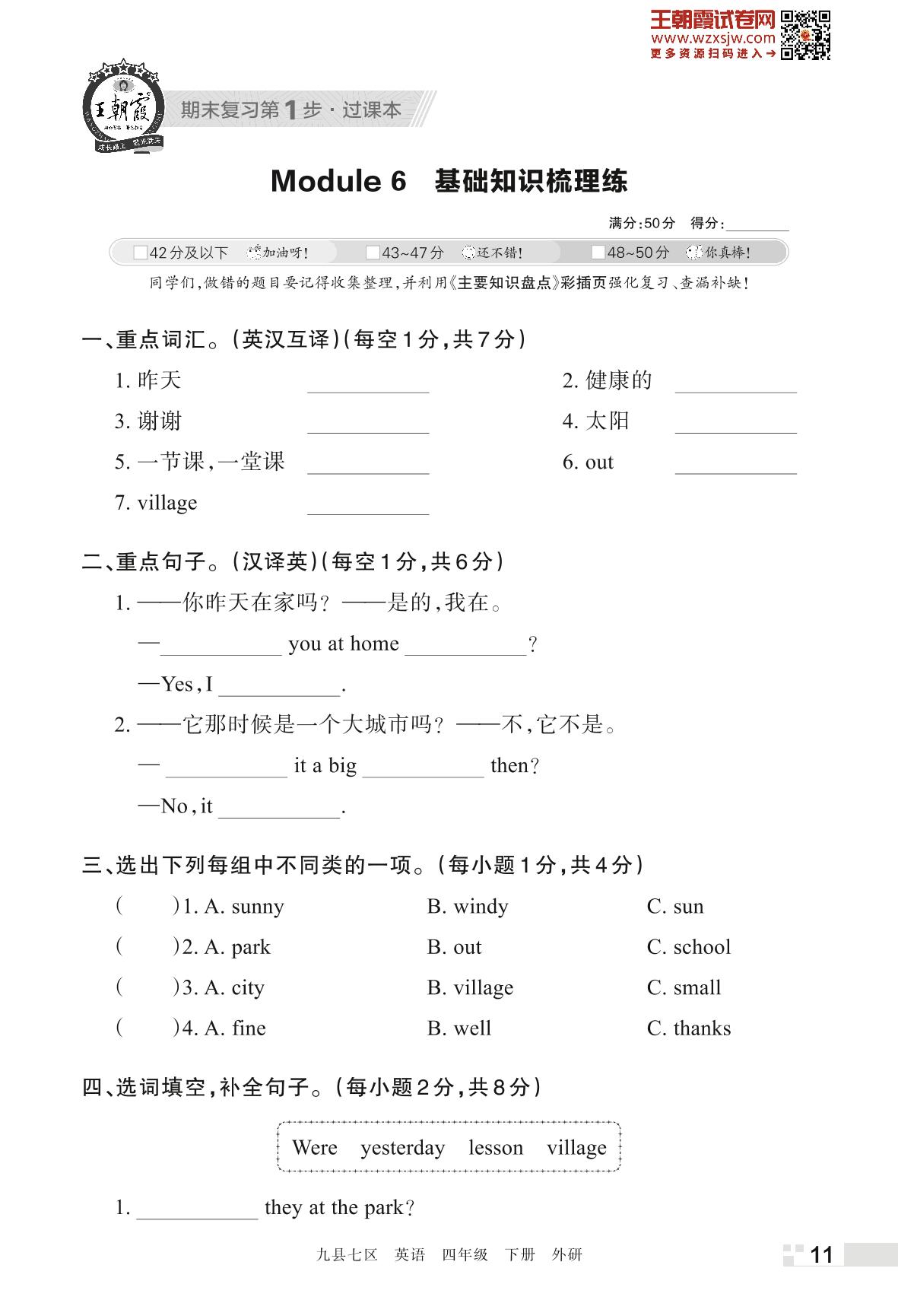 王朝霞期末过课本——Module 6 基础知识梳理练四年级下册英语(外研版)_R230425142258625