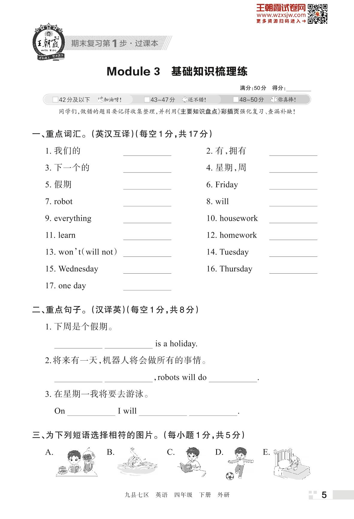 王朝霞期末过课本——Module 3 基础知识梳理练四年级下册英语(外研版)_R230425142259459