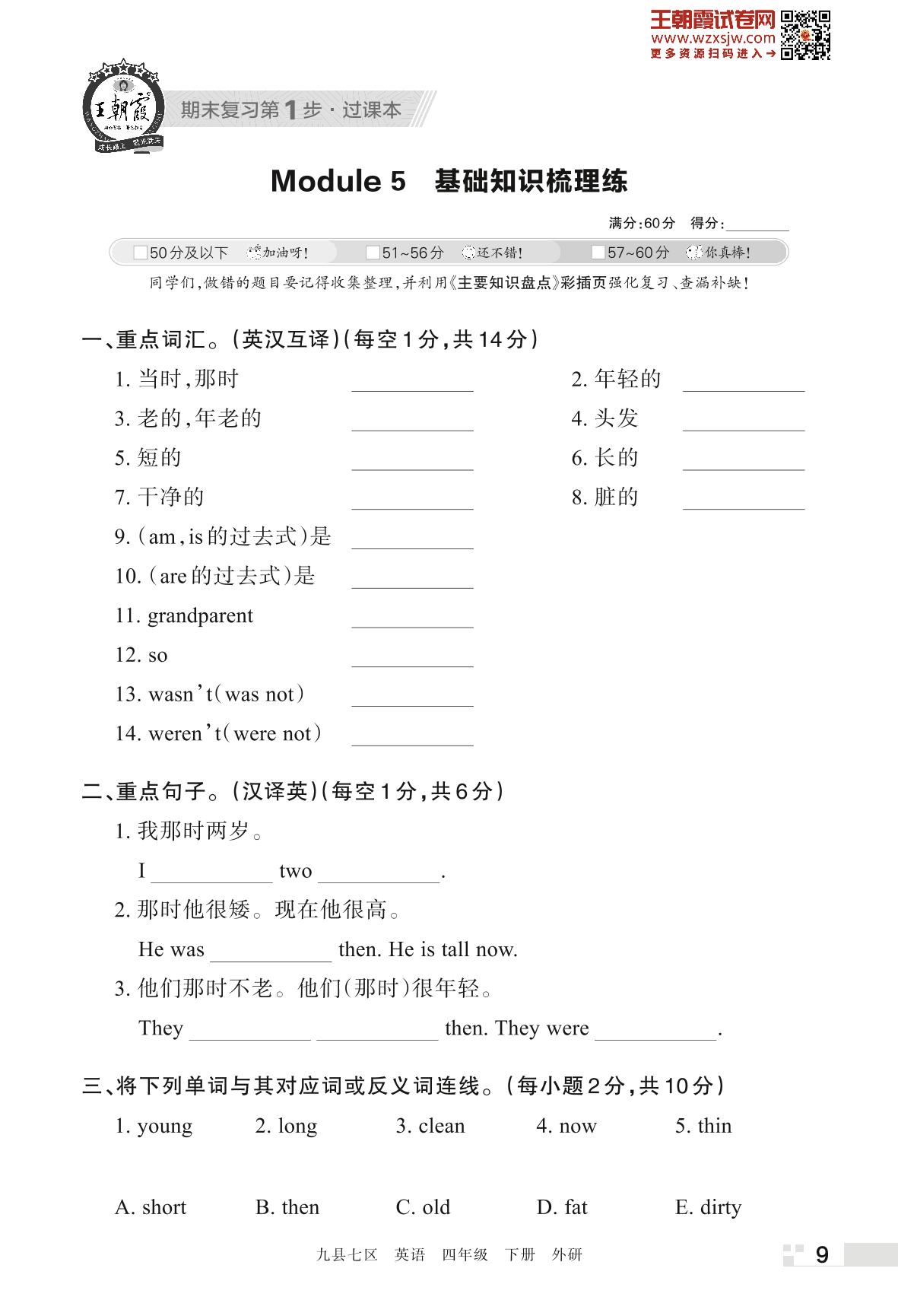 王朝霞期末过课本——Module 5 基础知识梳理练四年级下册英语(外研版)_R230425142259413