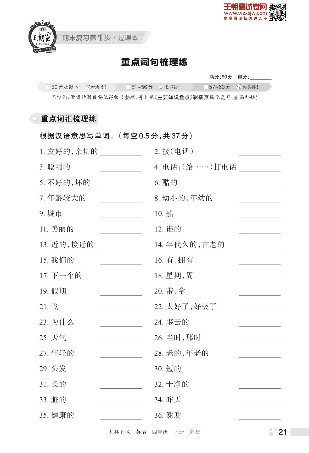 王朝霞期末过课本——重点词句梳理练四年级下册英语(外研版)_R230425142259556