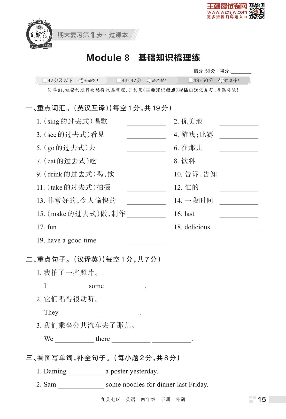 王朝霞期末过课本——Module 8 基础知识梳理练四年级下册英语(外研版)_R230425142259298