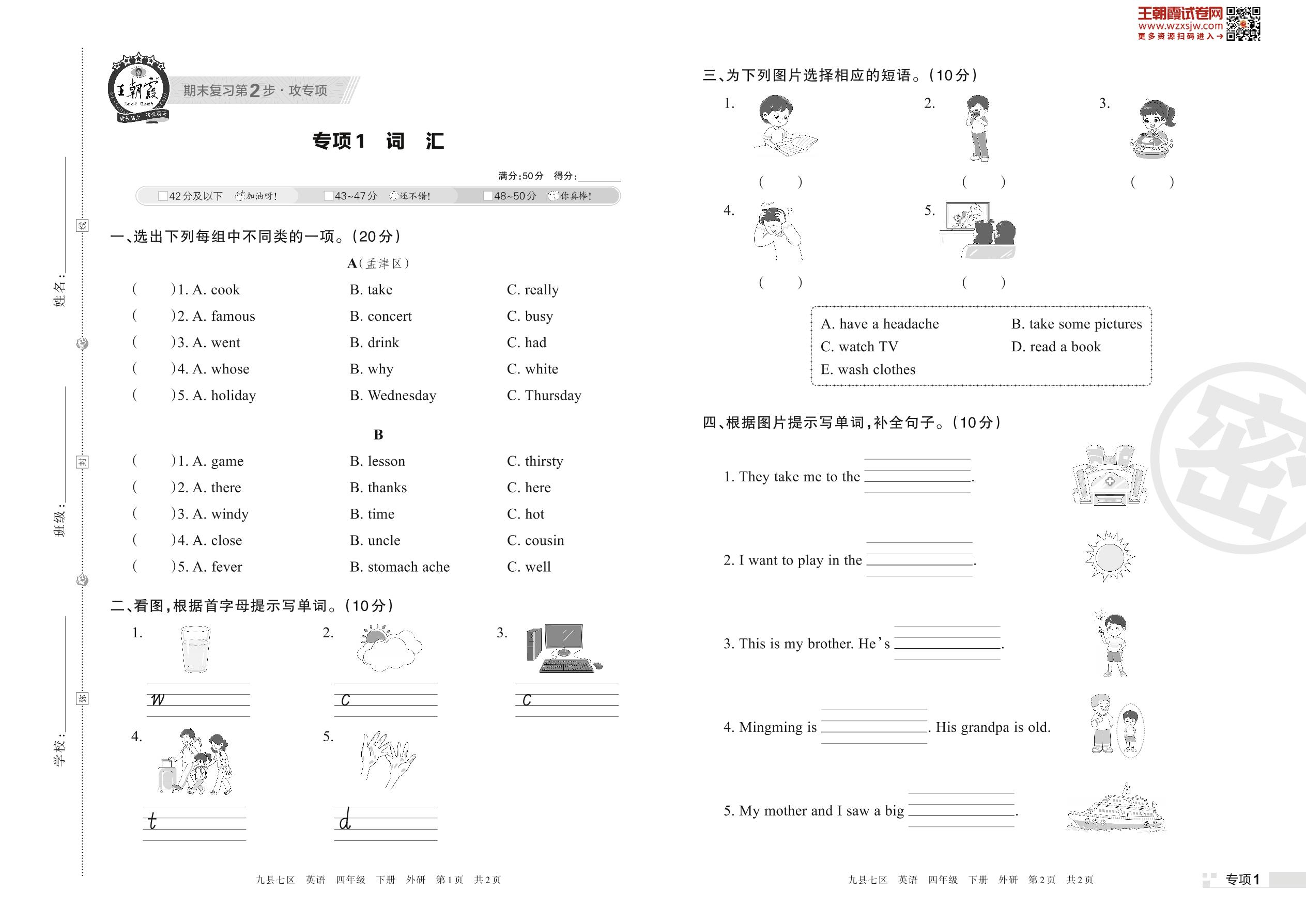 王朝霞期末专项卷——词汇四年级下册英语(外研版)_R230425142300211【1】