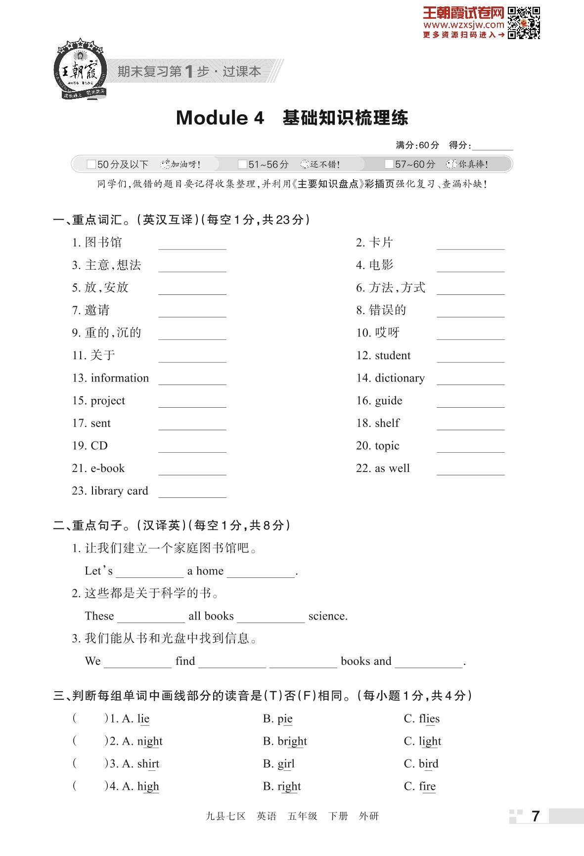 王朝霞期末过课本——Module 4 基础知识梳理练五年级下册英语(外研版)_R230425142909657