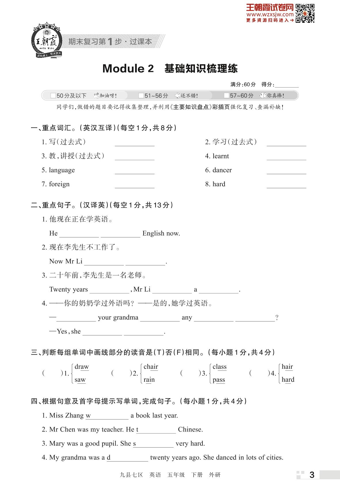 王朝霞期末过课本——Module 2 基础知识梳理练五年级下册英语(外研版)_R230425142909252