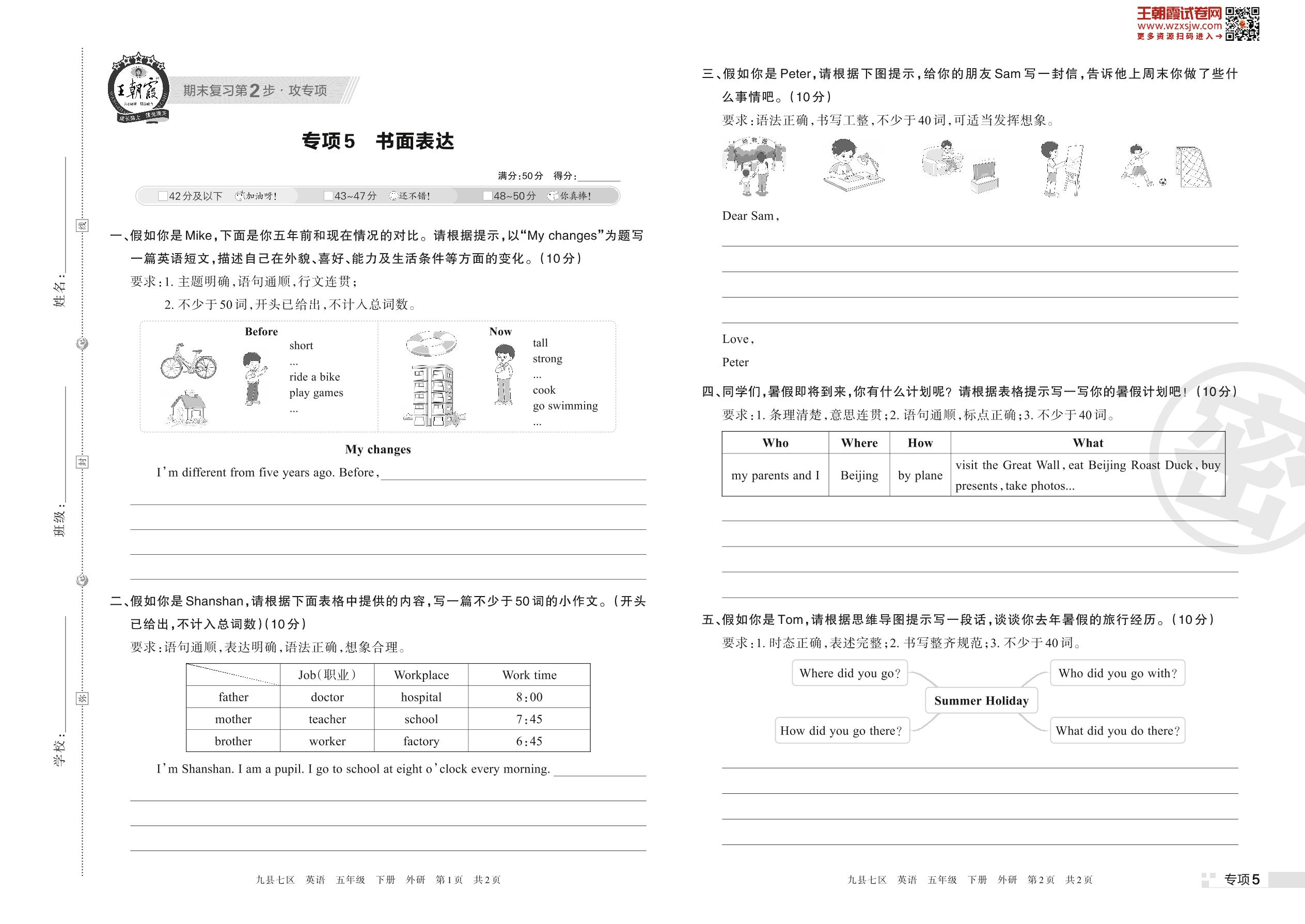 王朝霞期末专项卷——书面表达五年级下册英语(外研版)_R230425142910385【5】