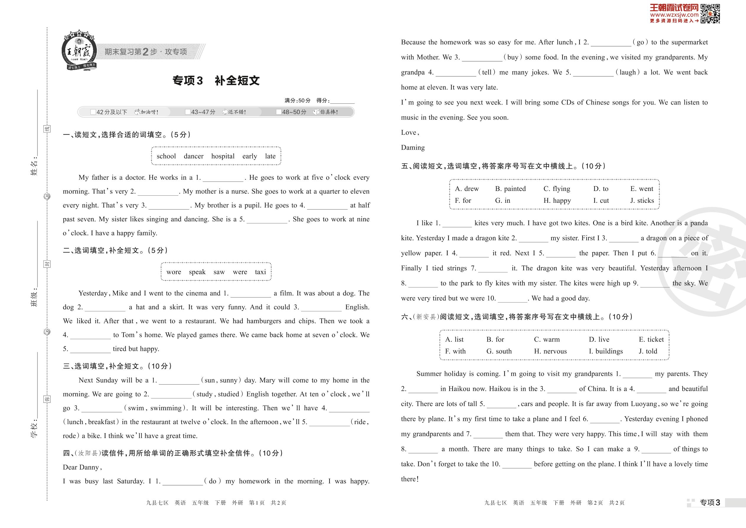 王朝霞期末专项卷——补全短文五年级下册英语(外研版)_R230425142910569【3】