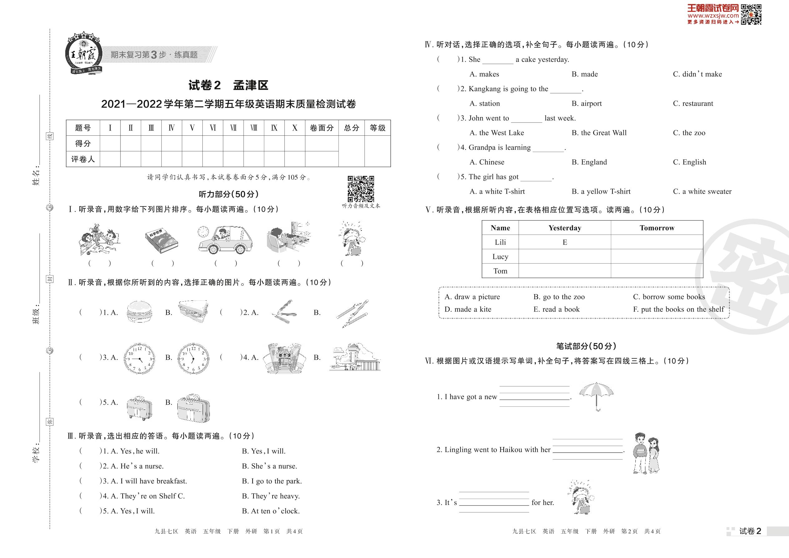 孟津区2021—2022学年第二学期五年级英语期末质量检测试卷(外研版)【2】
