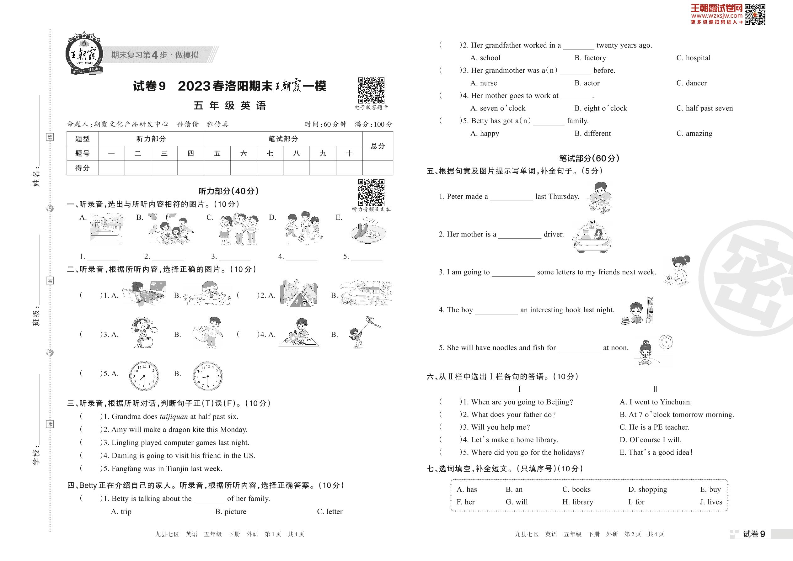 王朝霞期末模拟卷五年级下册英语(外研版)_R230425142912857【9】