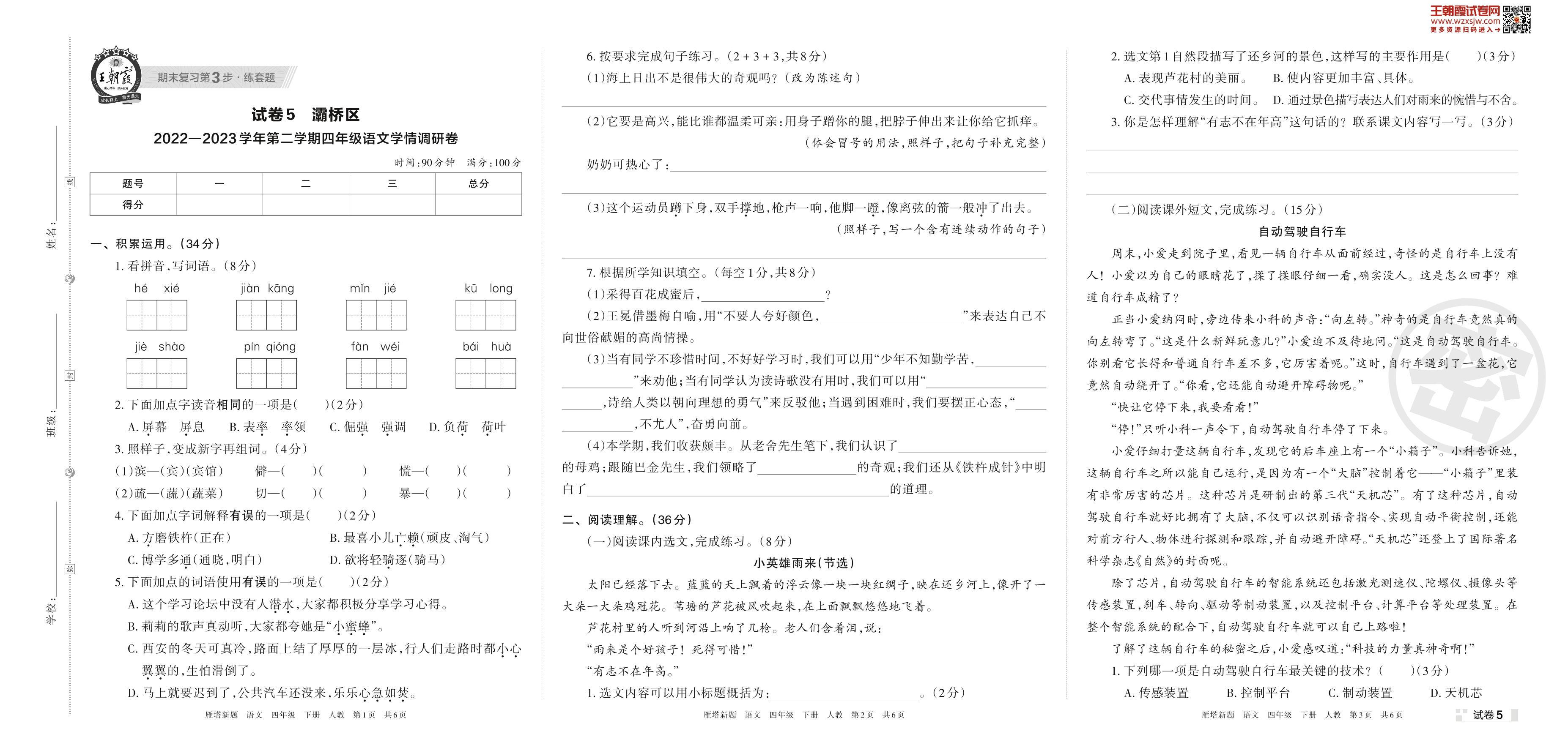 灞桥区2022—2023学年第二学期四年级语文学情调研卷(人教版)【5】