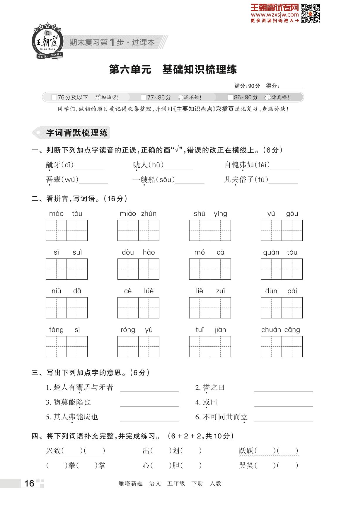 王朝霞期末过课本——第六单元 基础知识梳理练五年级下册语文(人教版)_R230425144557740