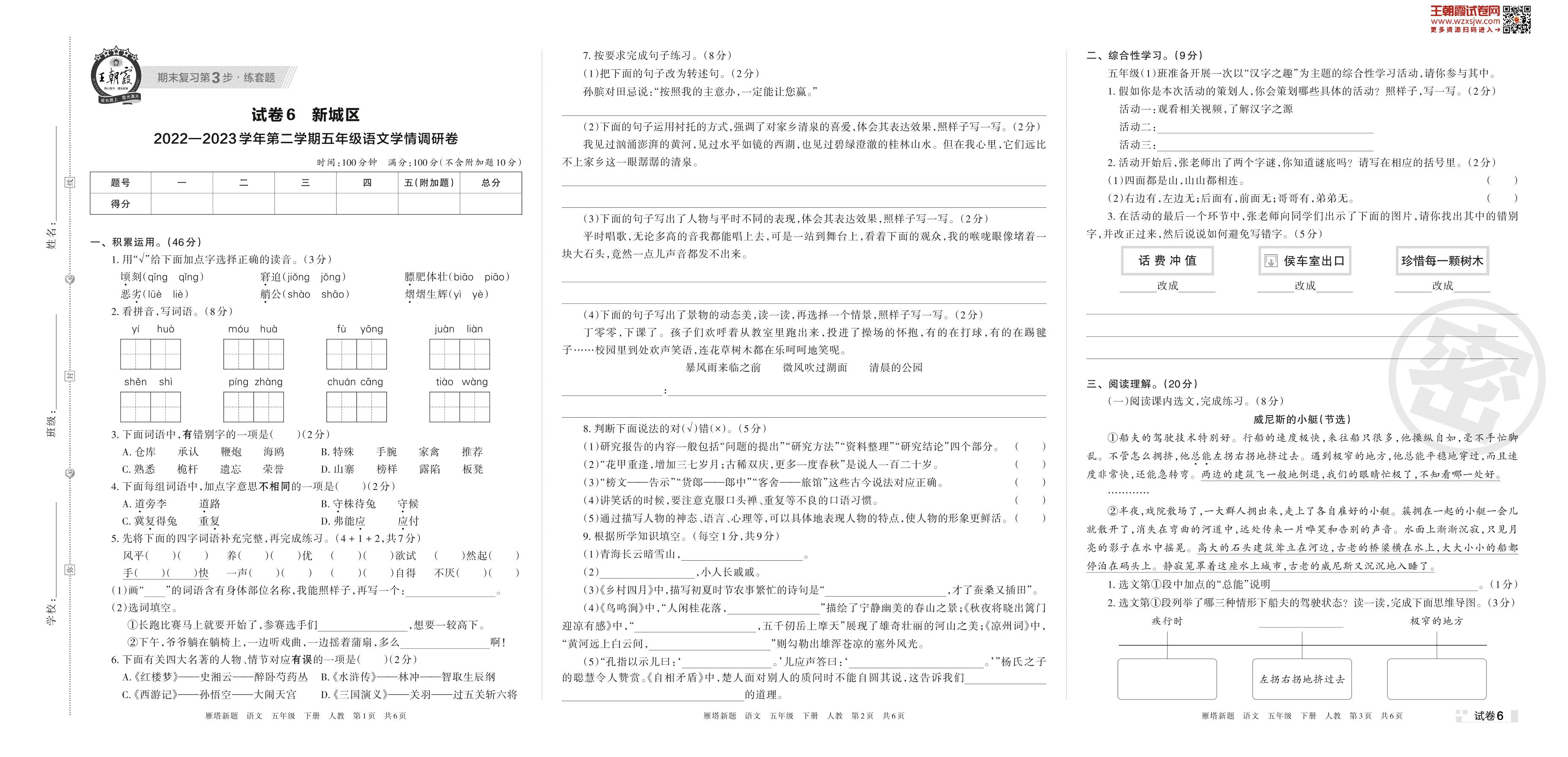 新城区2022—2023学年第二学期五年级语文学情调研卷(人教版)【6】