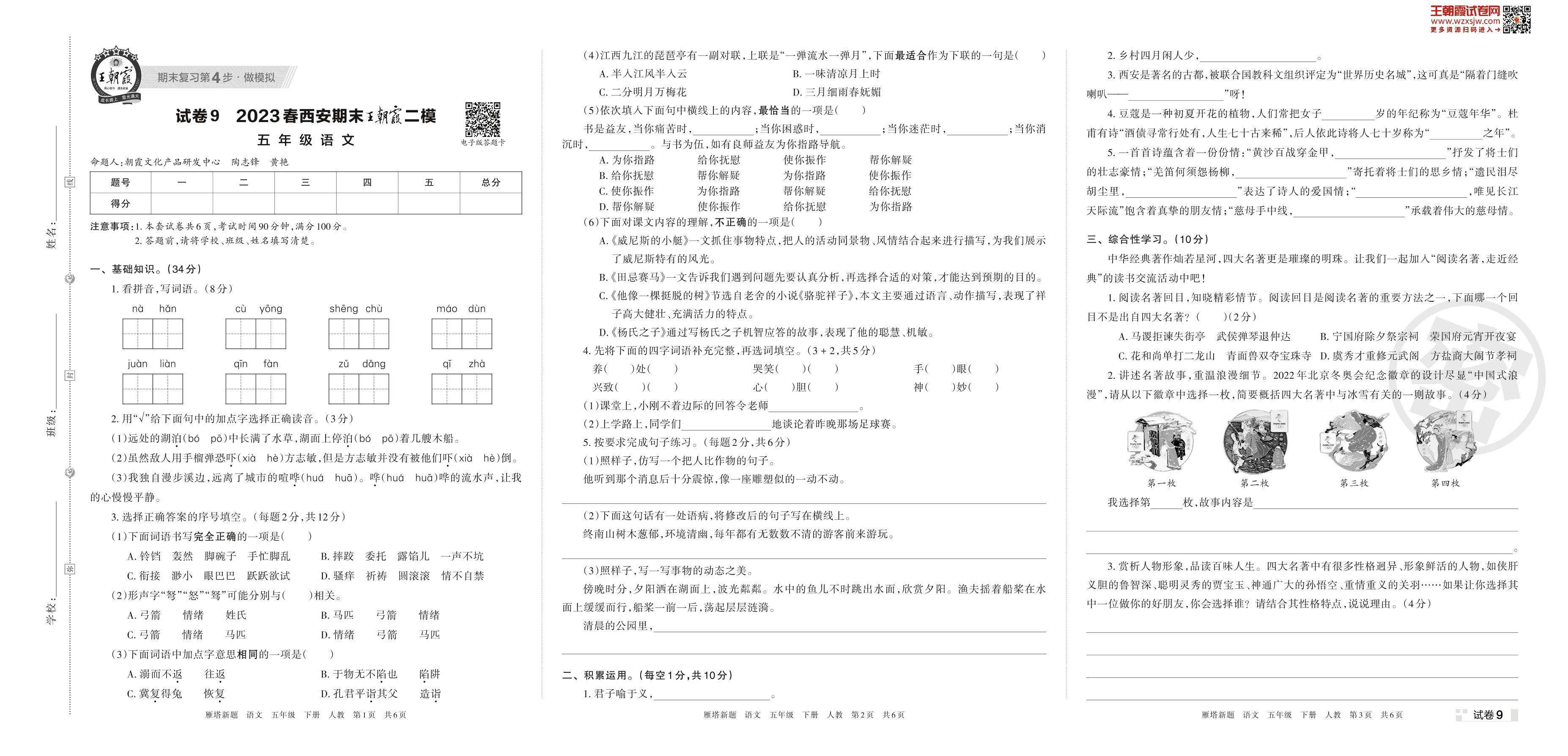 王朝霞期末模拟卷五年级下册语文(人教版)_R230425144559599【9】