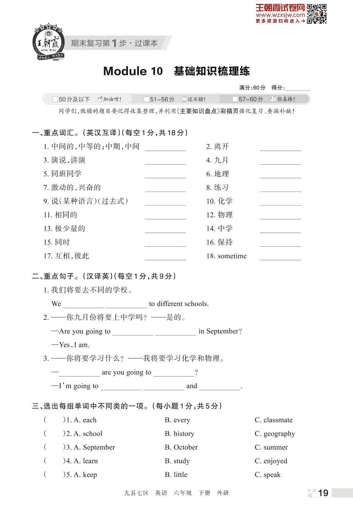 王朝霞期末过课本——Module 10 基础知识梳理练六年级下册英语(外研版)_R230425144724991