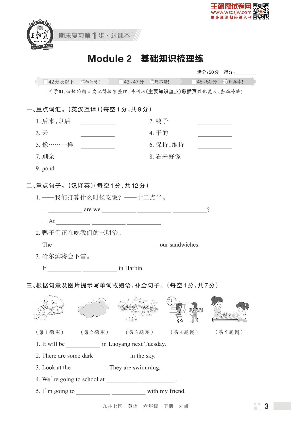 王朝霞期末过课本——Module 2 基础知识梳理练六年级下册英语(外研版)_R230425144724244