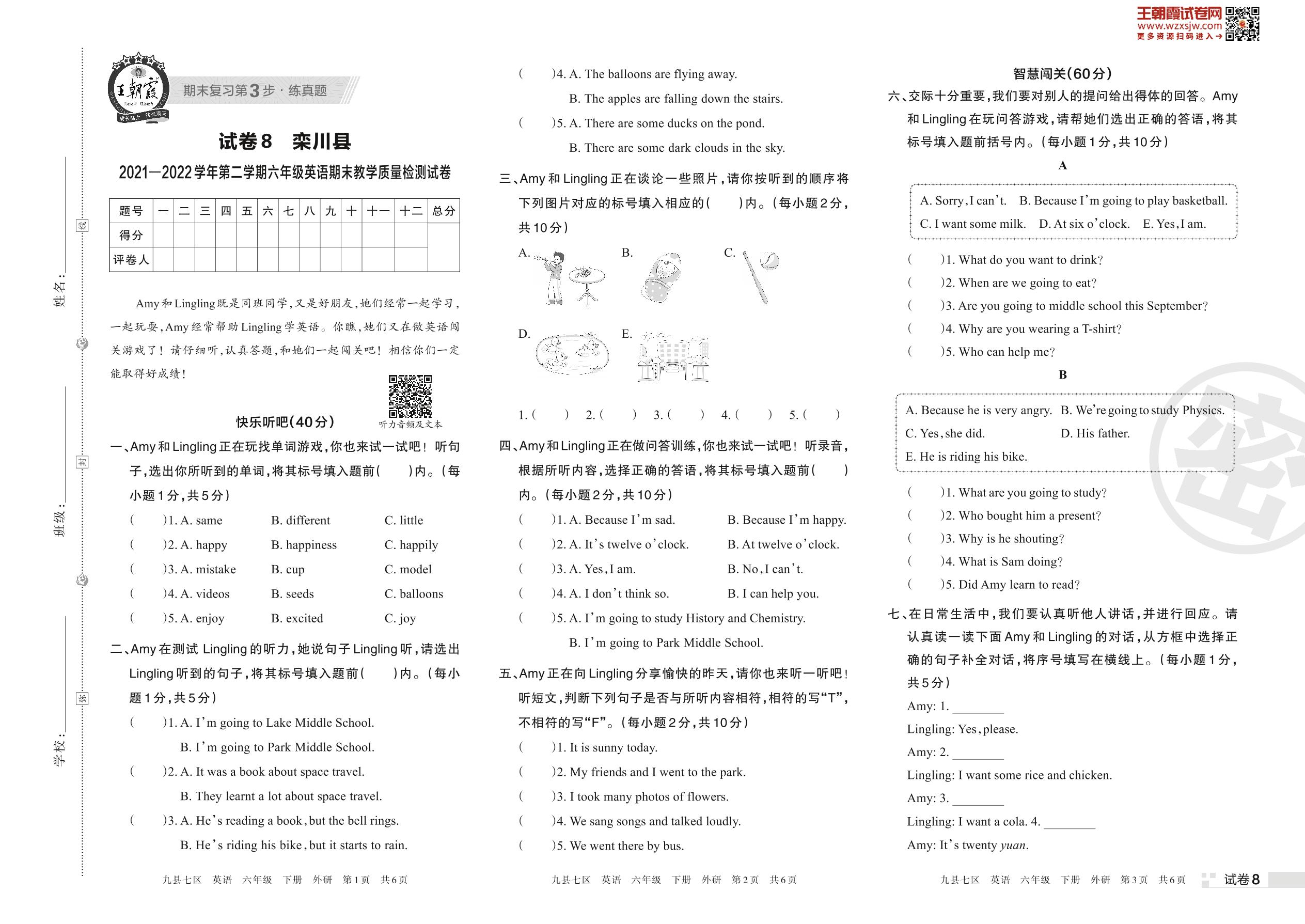 栾川县2021—2022学年第二学期六年级英语期末教学质量检测试卷(外研版)【8】