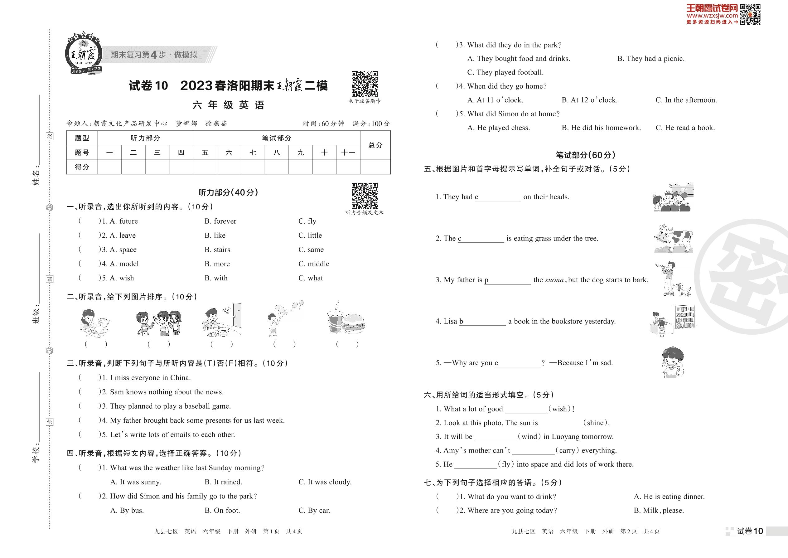 王朝霞期末模拟卷六年级下册英语(外研版)_R230425144727729【10】