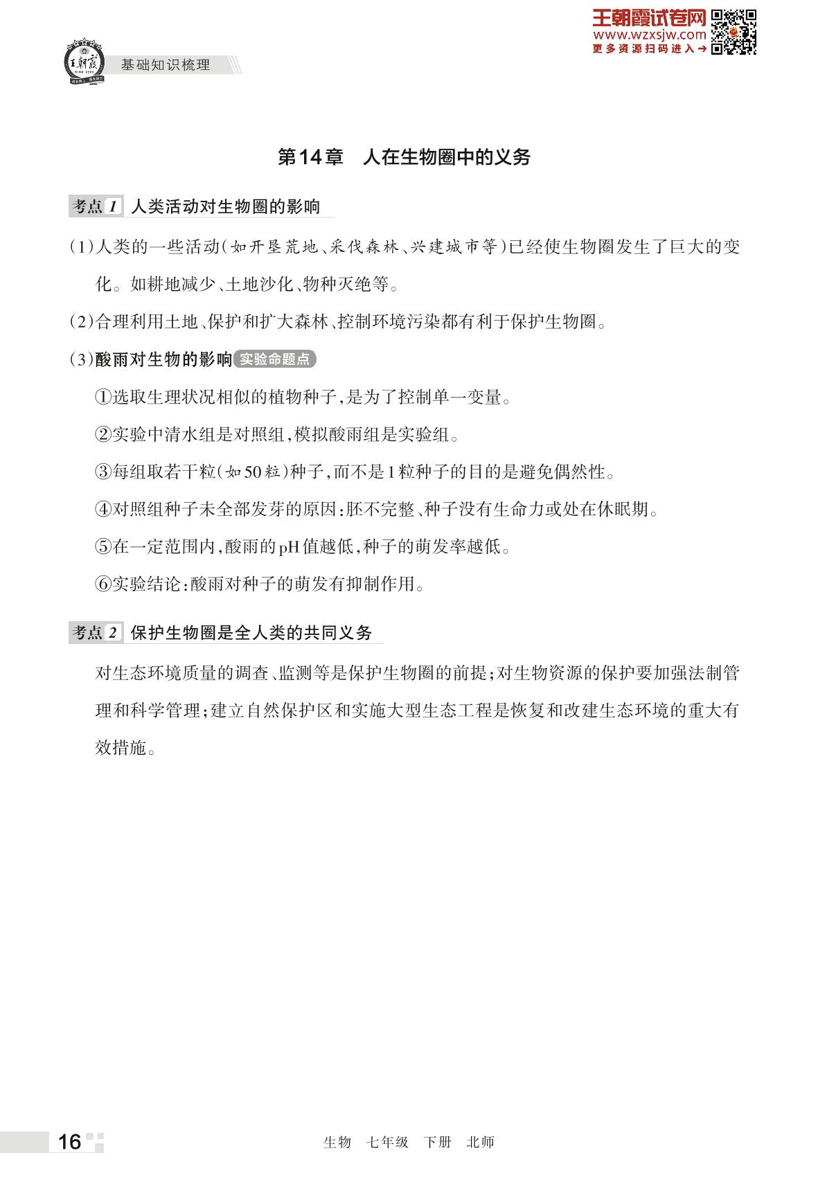 王朝霞期末知识梳理——第14章 人在生物圈中的义务七年级下册生物(北师版)