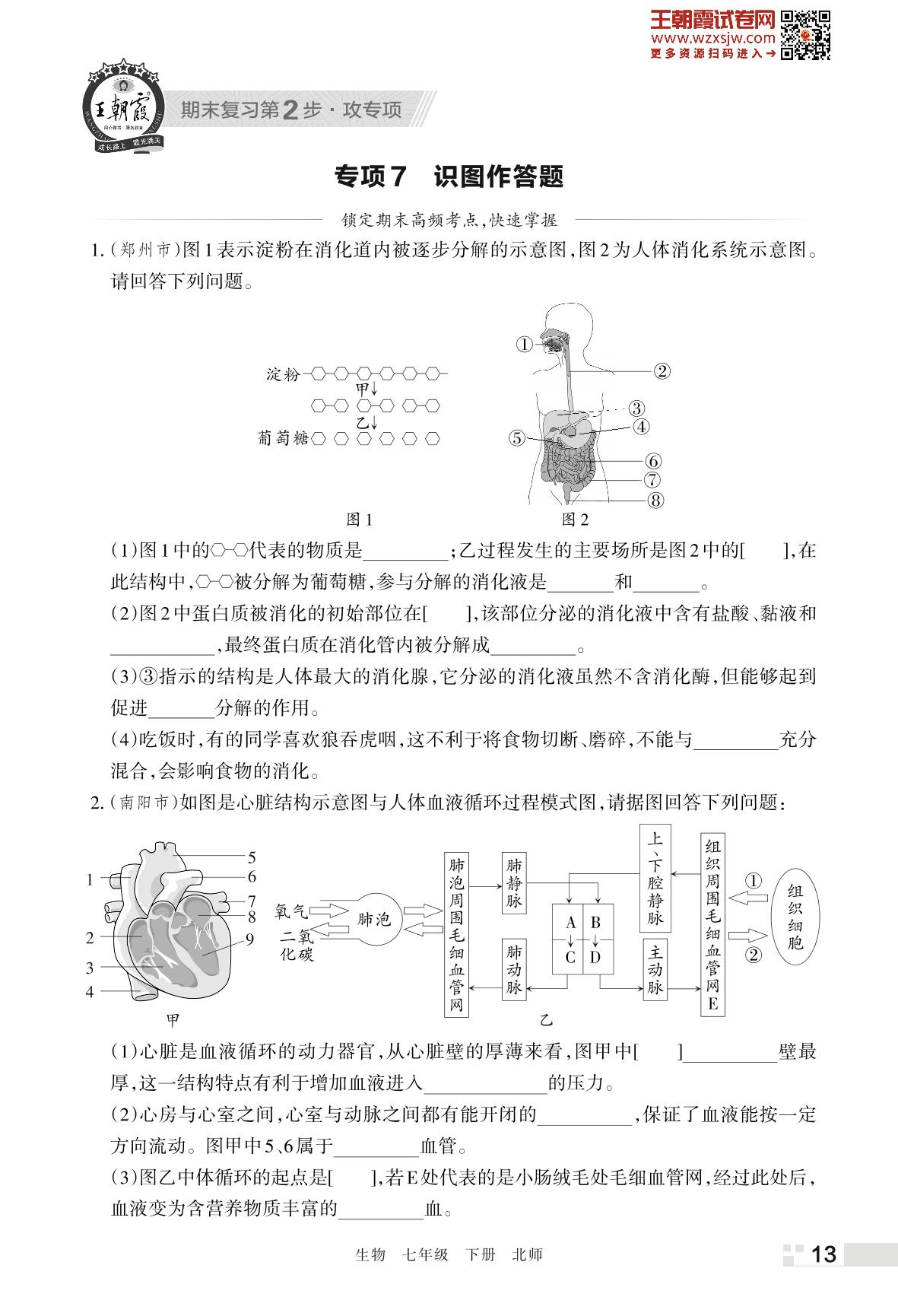 王朝霞期末专项卷——识图作答题七年级下册生物(北师版)_R230425150838150【7】