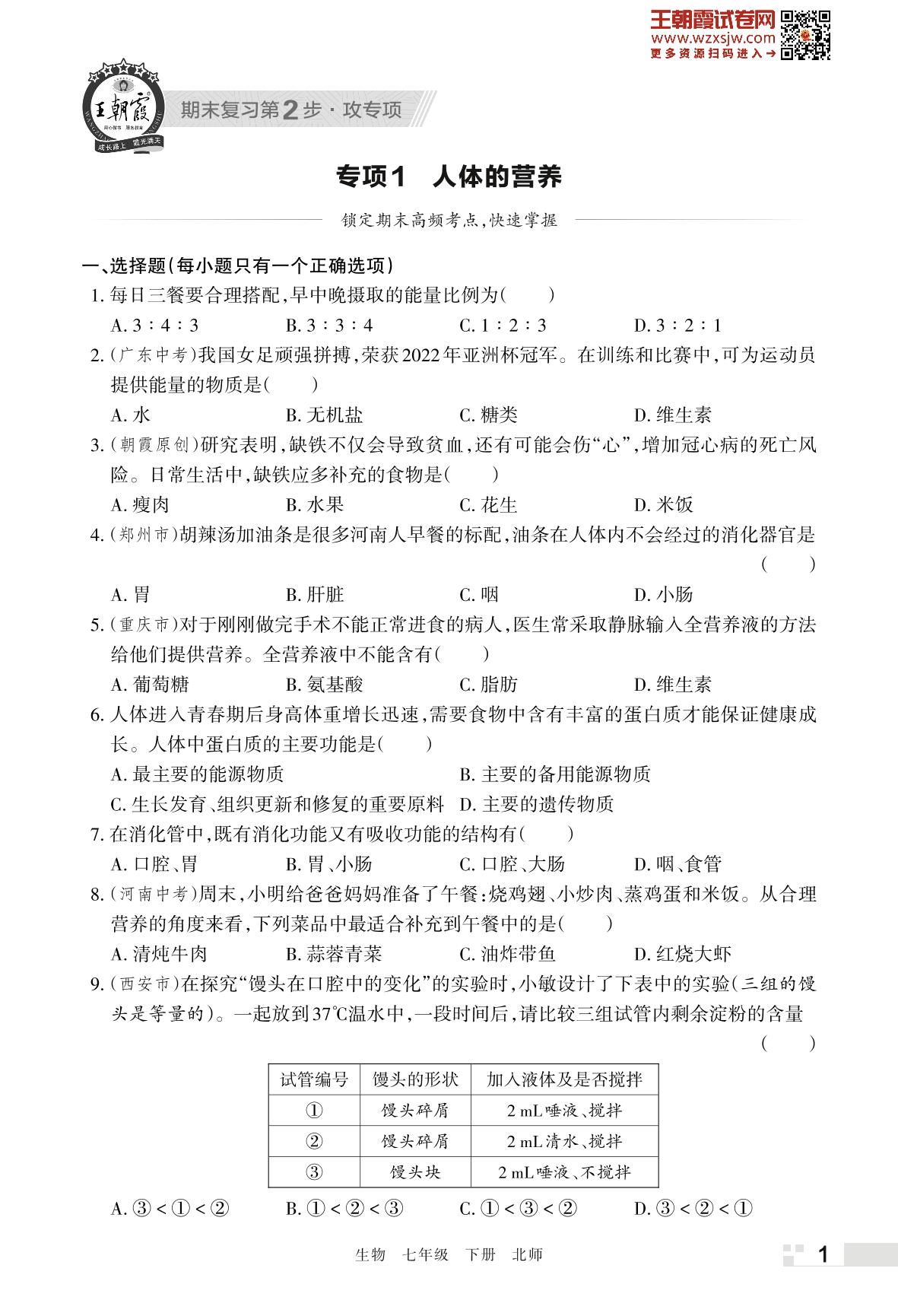 王朝霞期末专项卷——人体的营养七年级下册生物(北师版)_R230425150838583【1】
