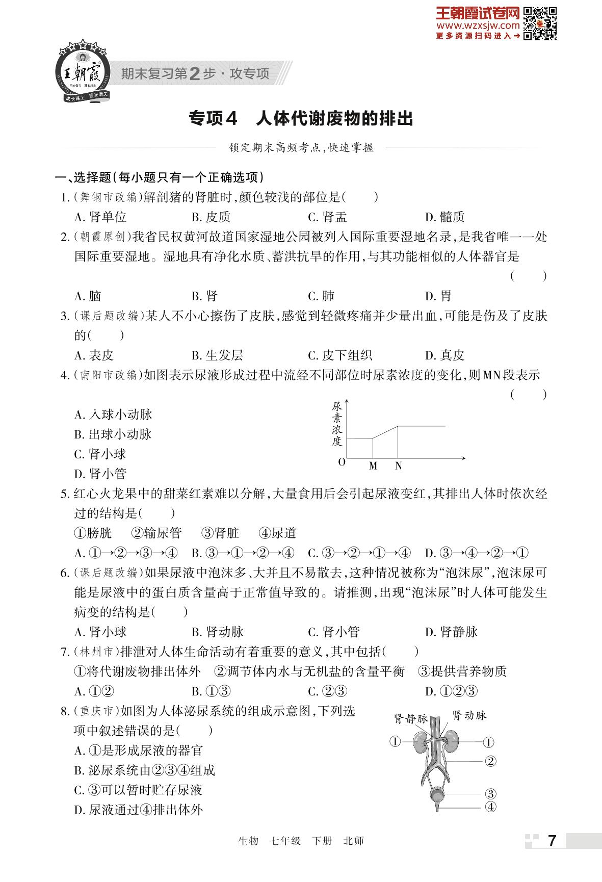 王朝霞期末专项卷——人体代谢废物的排出七年级下册生物(北师版)_R230425150838458【4】