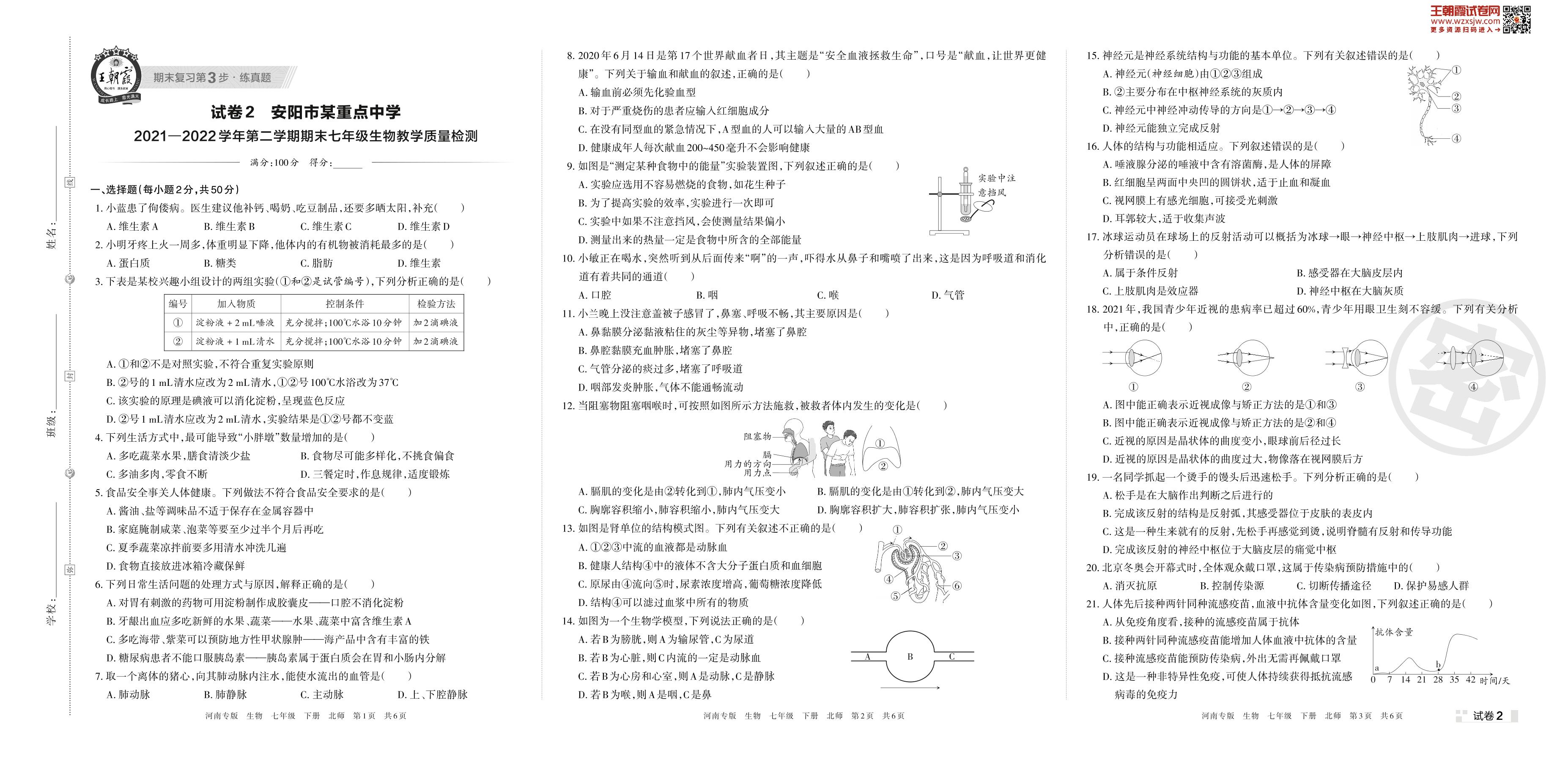 安阳市某重点中学2021—2022学年第二学期期末七年级生物教学质量检测(北师版)【2】