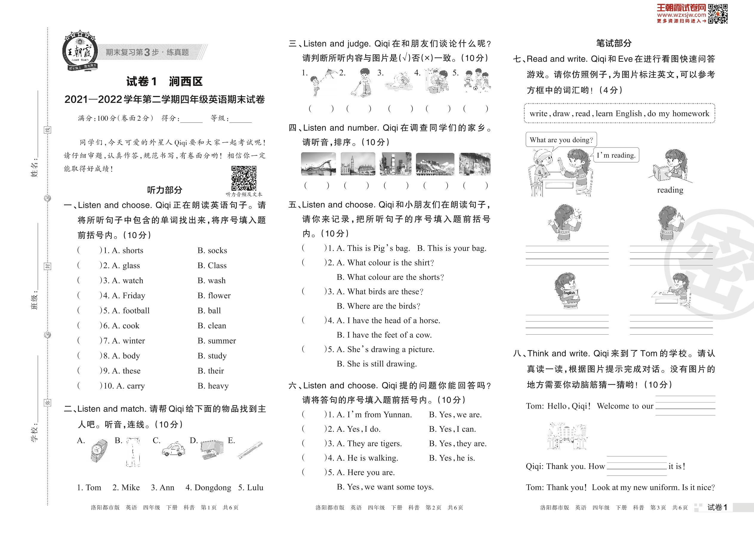 涧西区2021—2022学年第二学期四年级英语期末试卷(科普版)【1】
