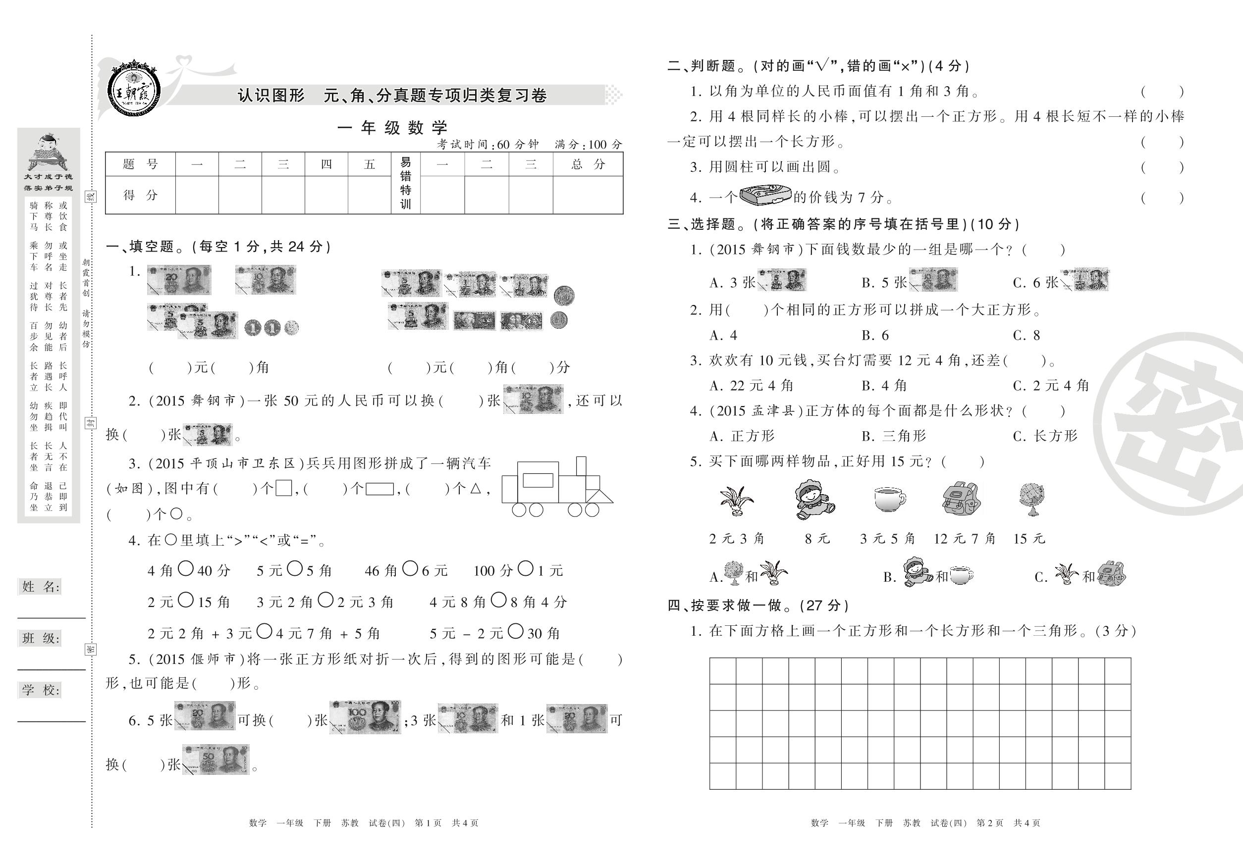 王朝霞期末专项卷一年级下册数学(苏教版)_R210802220752【4】