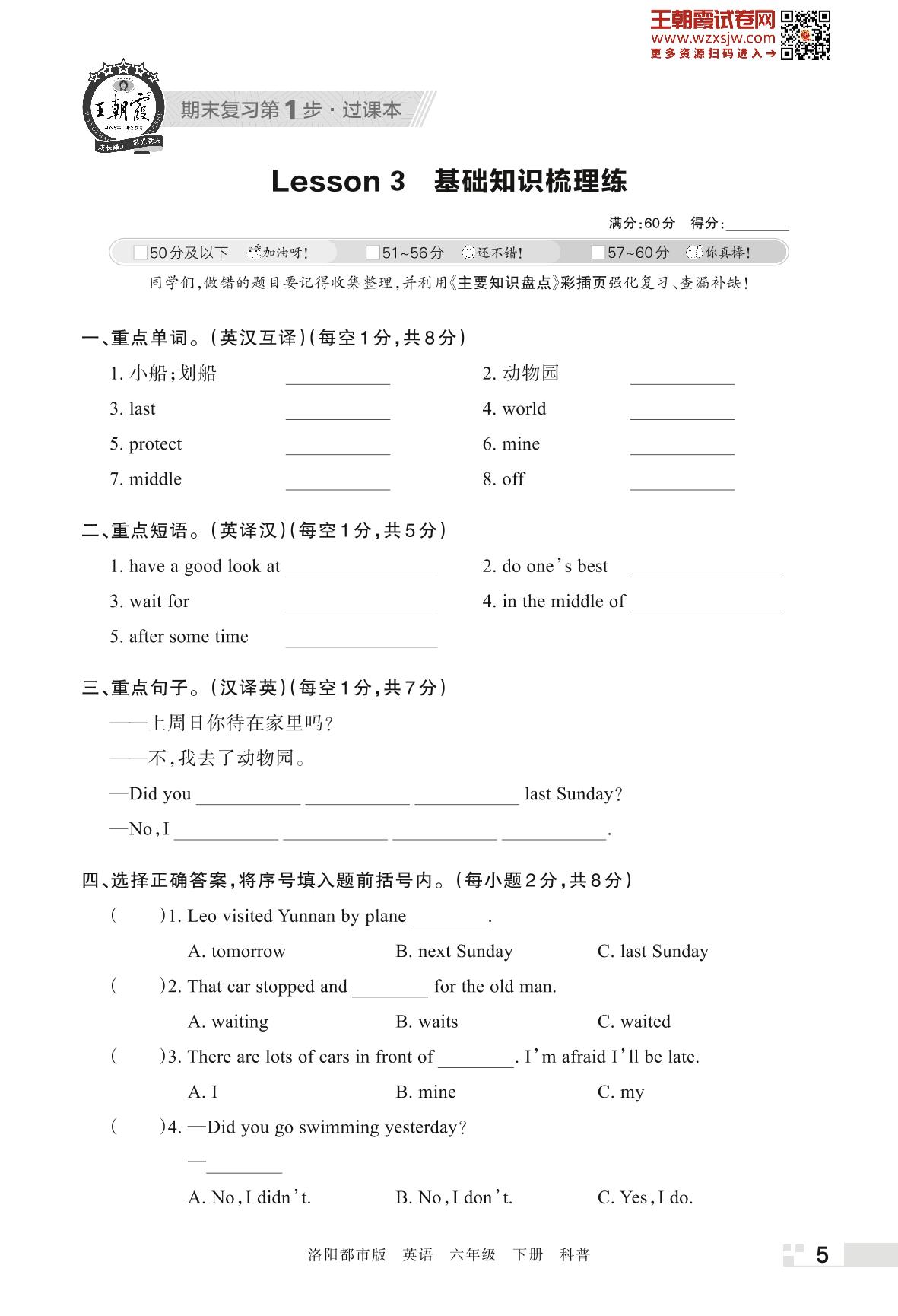 王朝霞期末过课本——Lesson 3 基础知识梳理练六年级下册英语(科普版)_R230425153052630