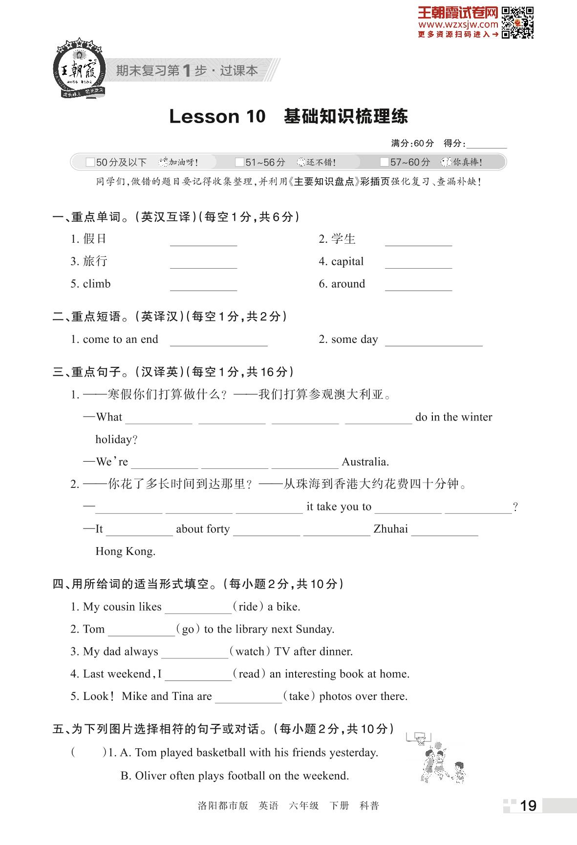 王朝霞期末过课本——Lesson 10 基础知识梳理练六年级下册英语(科普版)_R230425153052470