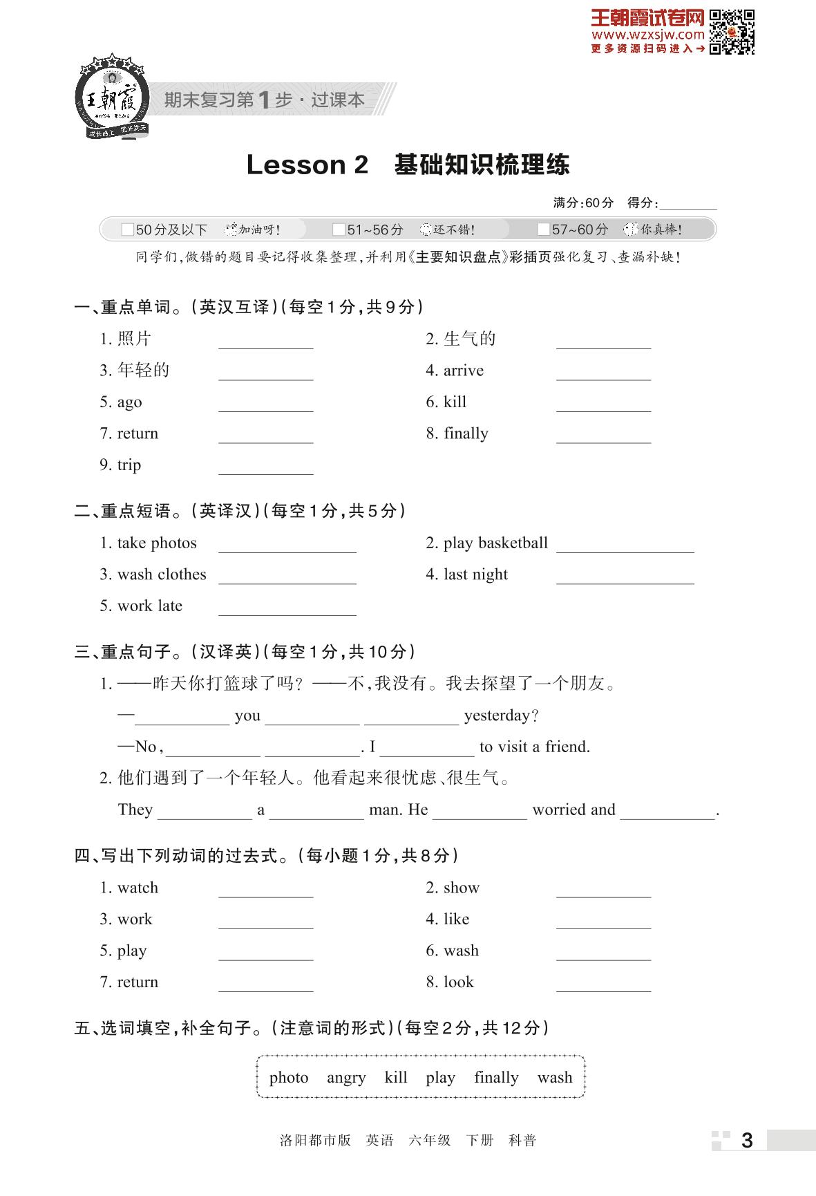 王朝霞期末过课本——Lesson 2 基础知识梳理练六年级下册英语(科普版)_R230425153053593