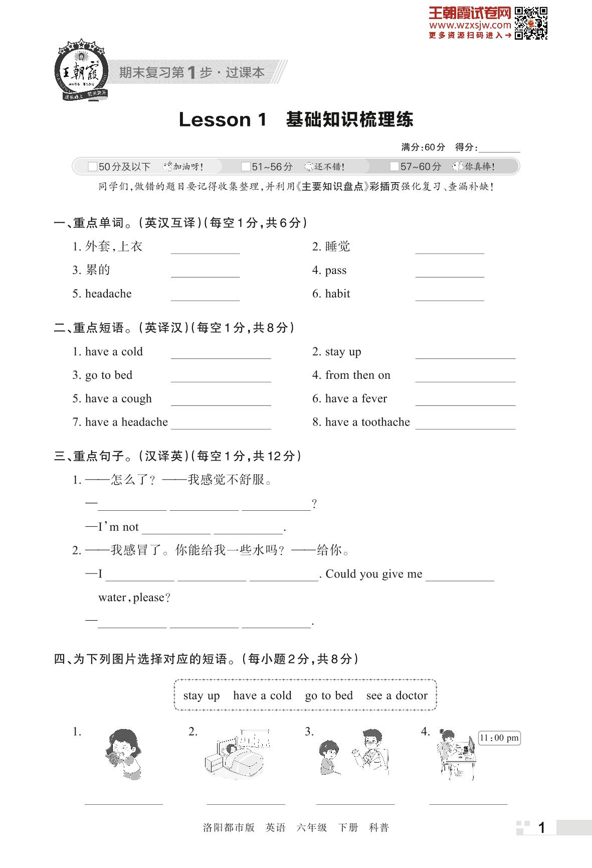 王朝霞期末过课本——Lesson 1 基础知识梳理练六年级下册英语(科普版)_R230425153053762