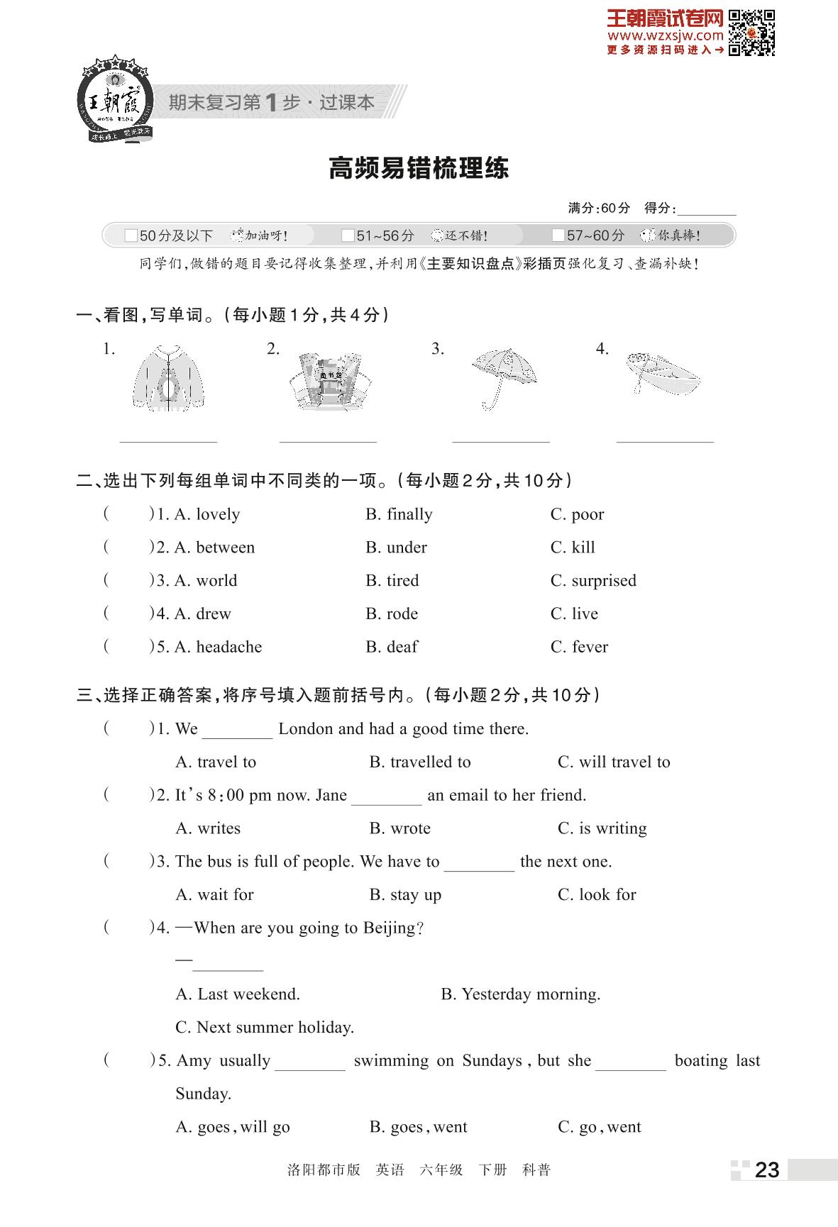 王朝霞期末过课本——高频易错梳理练六年级下册英语(科普版)_R230425153053090