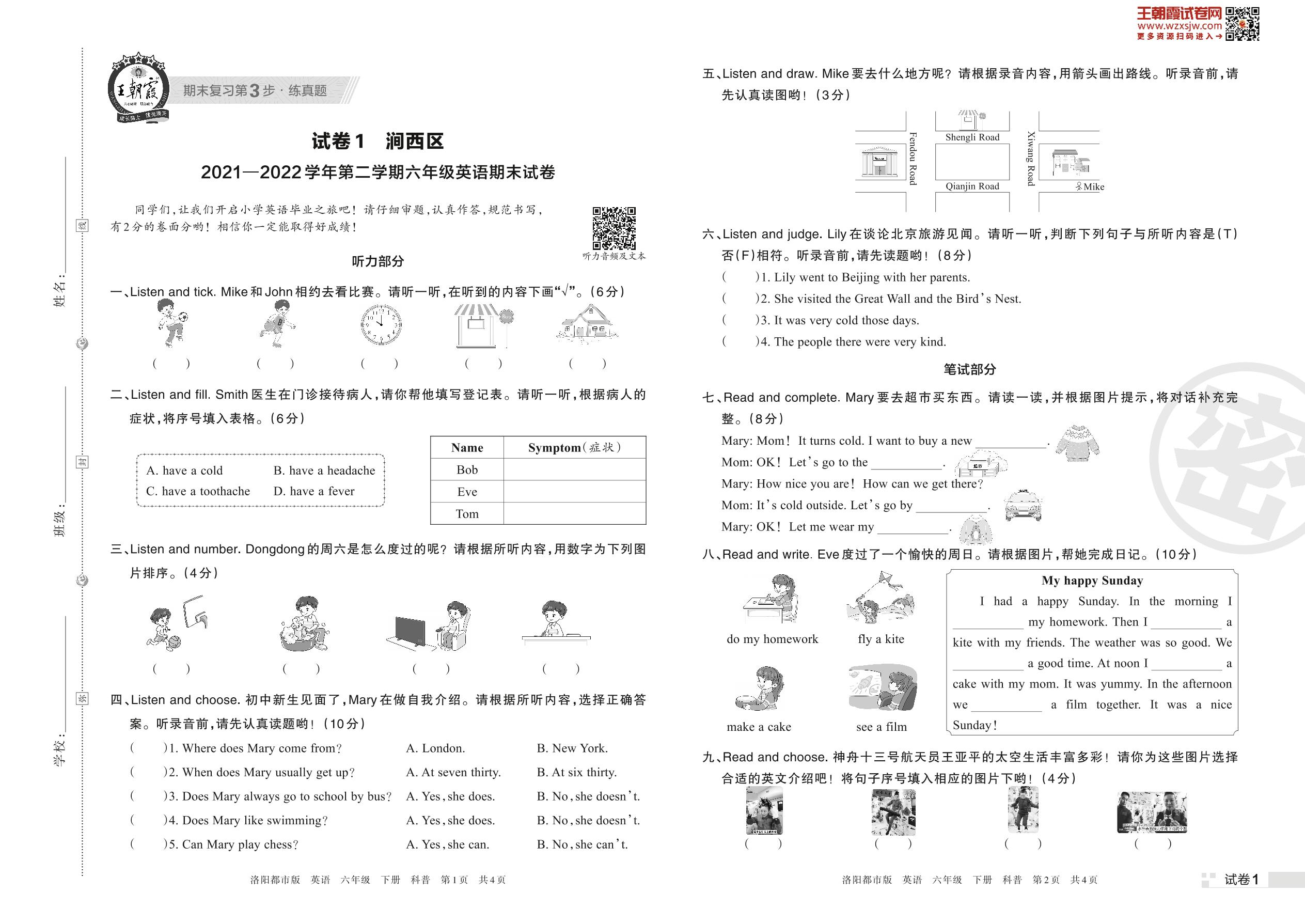 涧西区2021—2022学年第二学期六年级英语期末试卷(科普版)【1】