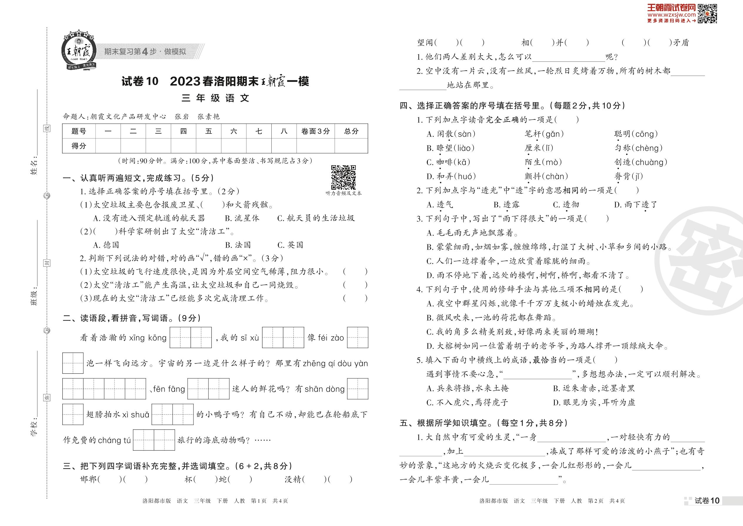 王朝霞期末模拟卷三年级下册语文(人教版)_R230425154341045【10】