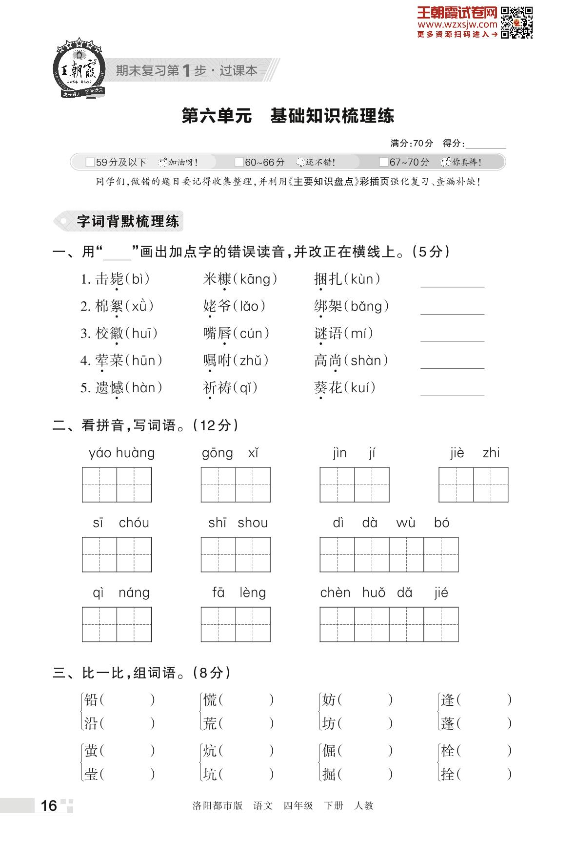 王朝霞期末过课本——第六单元 基础知识梳理练四年级下册语文(人教版)_R230425154857996
