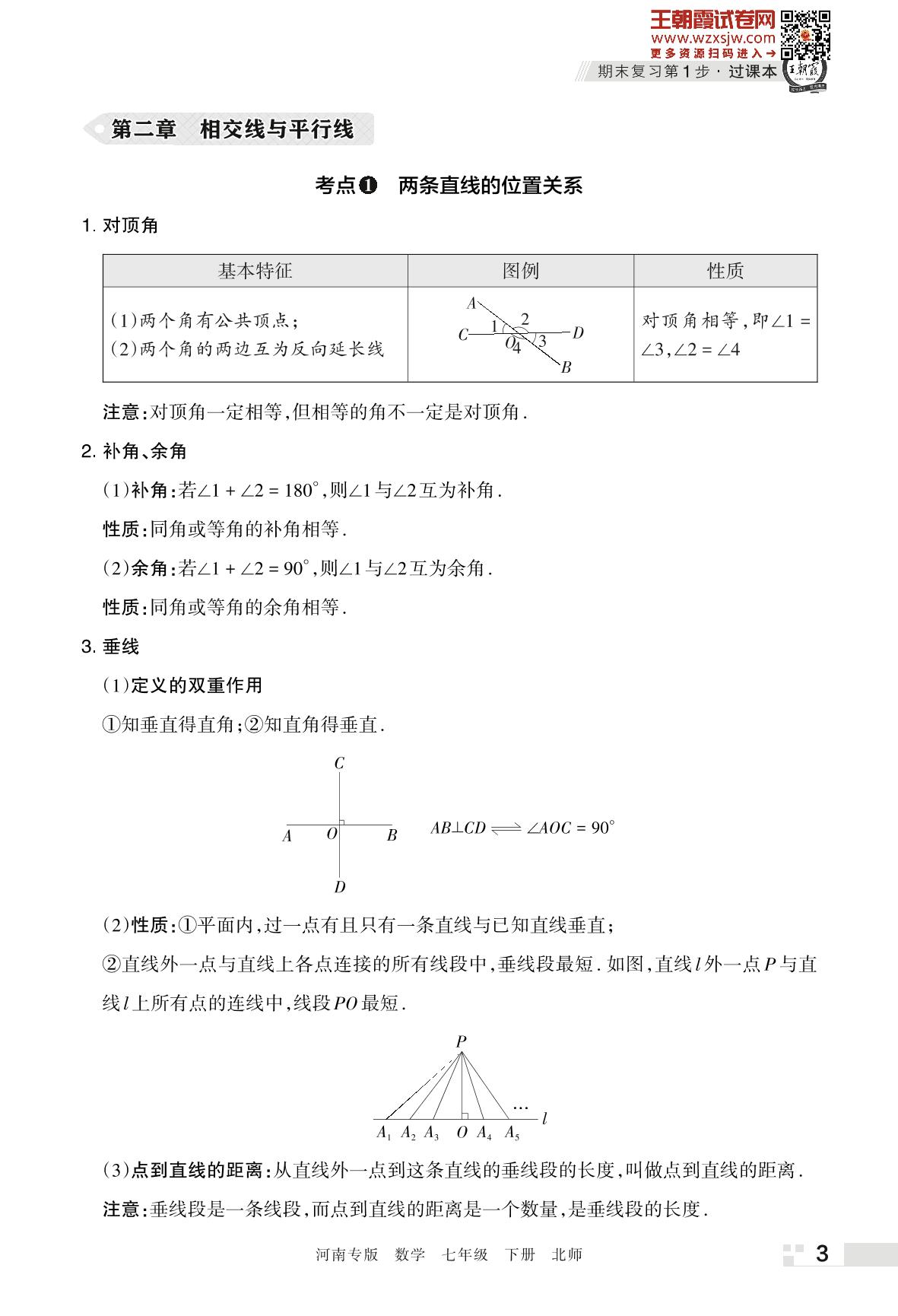 王朝霞期末知识梳理——第二章 相交线与平行线七年级下册数学(北师版)_R230425154927472
