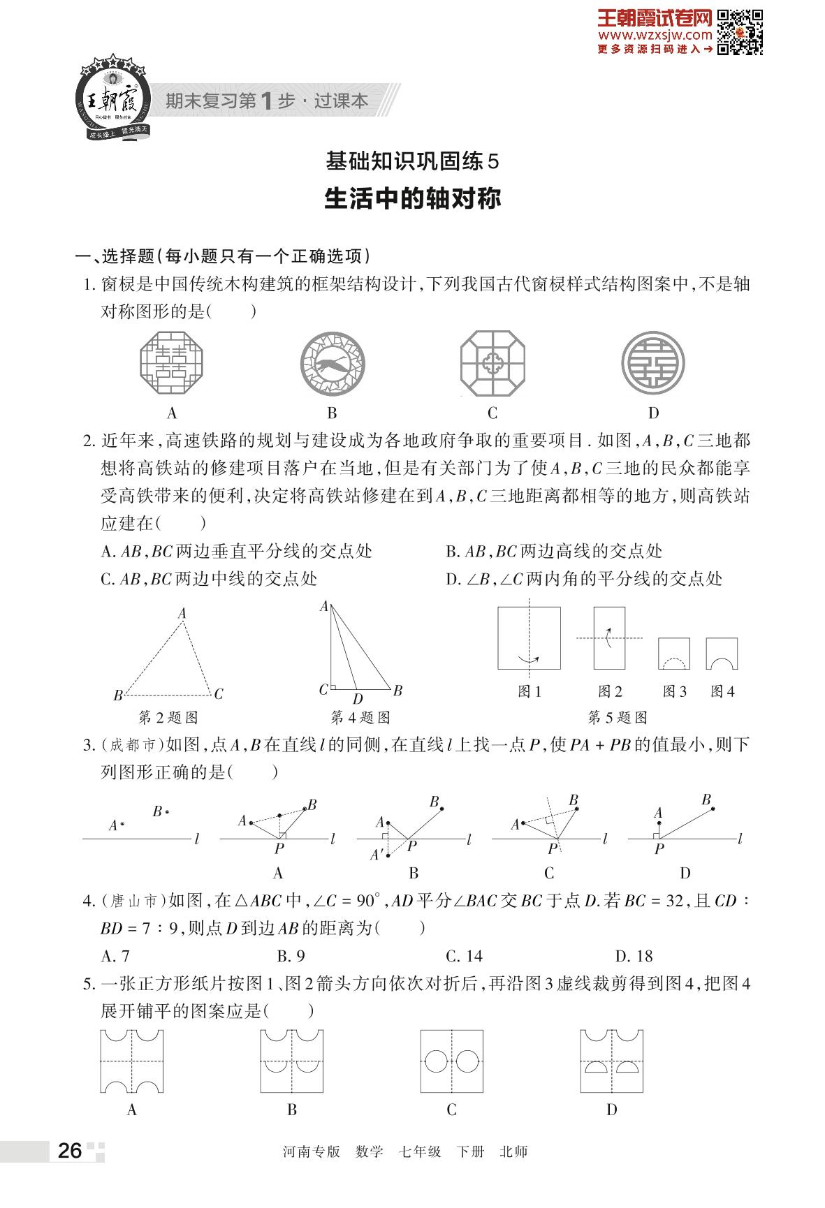 王朝霞期末过课本——基础知识巩固练5 生活中的轴对称七年级下册数学(北师版)_R230425154928439