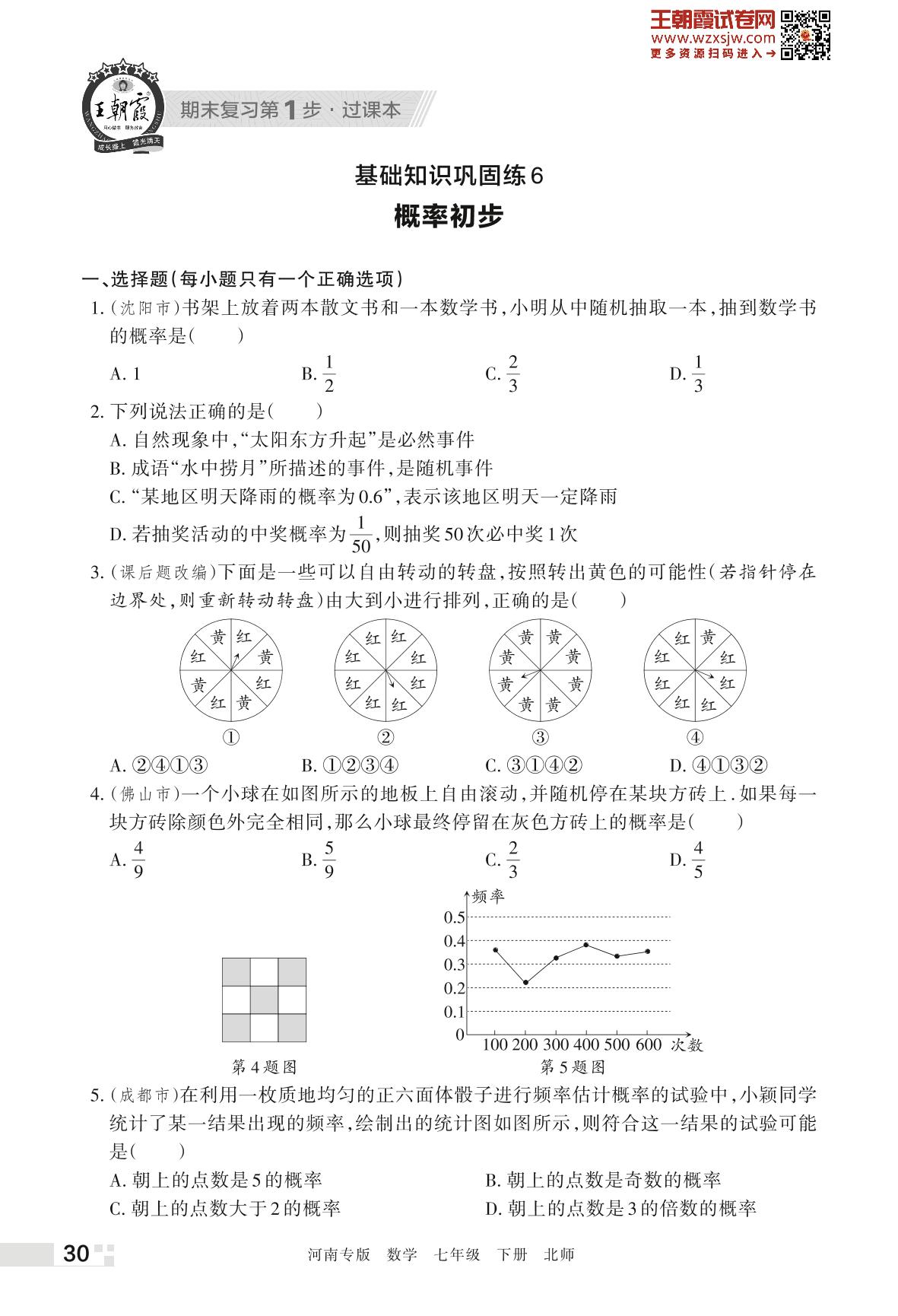 王朝霞期末过课本——基础知识巩固练6 概率初步七年级下册数学(北师版)_R230425154929843