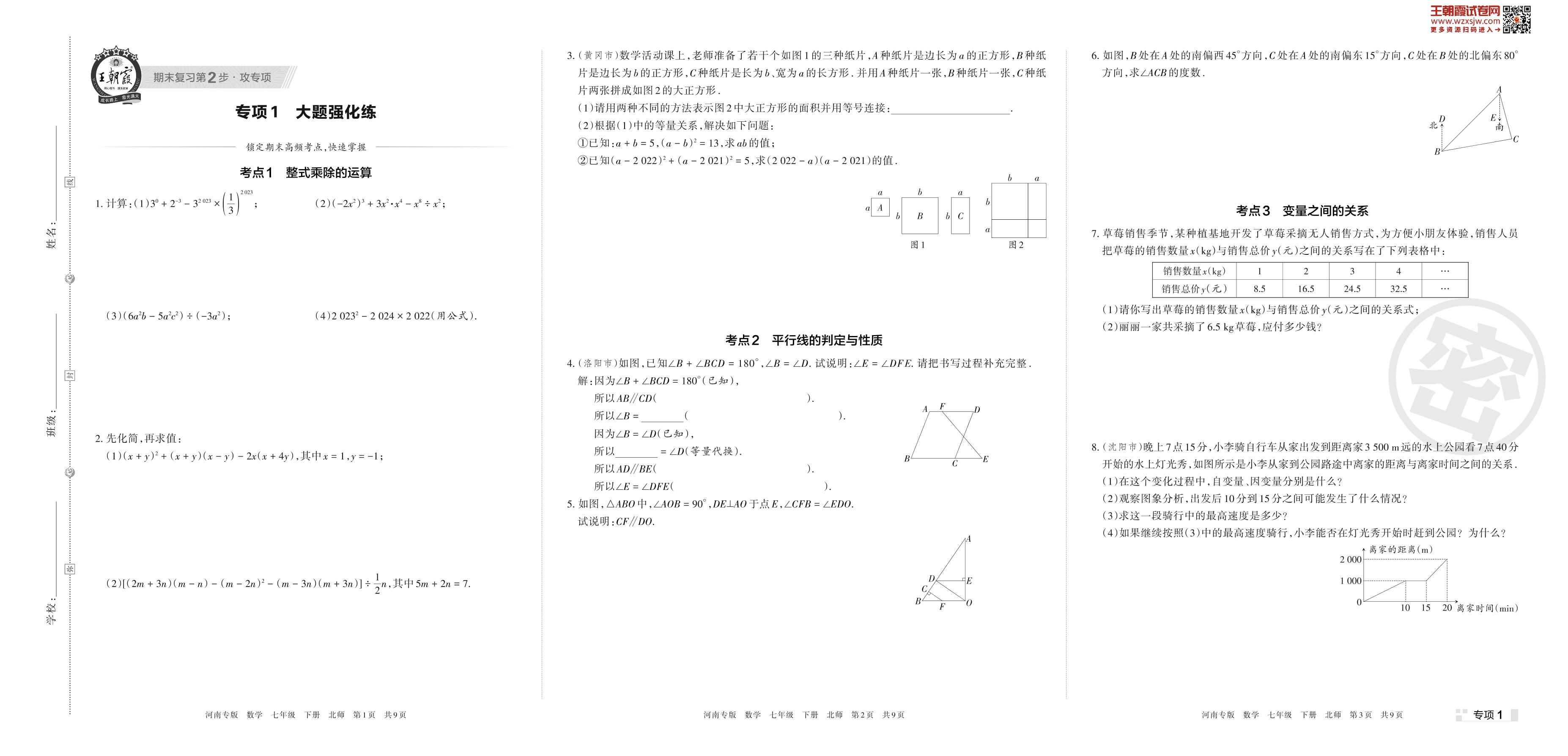 王朝霞期末专项卷——大题强化练七年级下册数学(北师版)_R230425154929542【1】