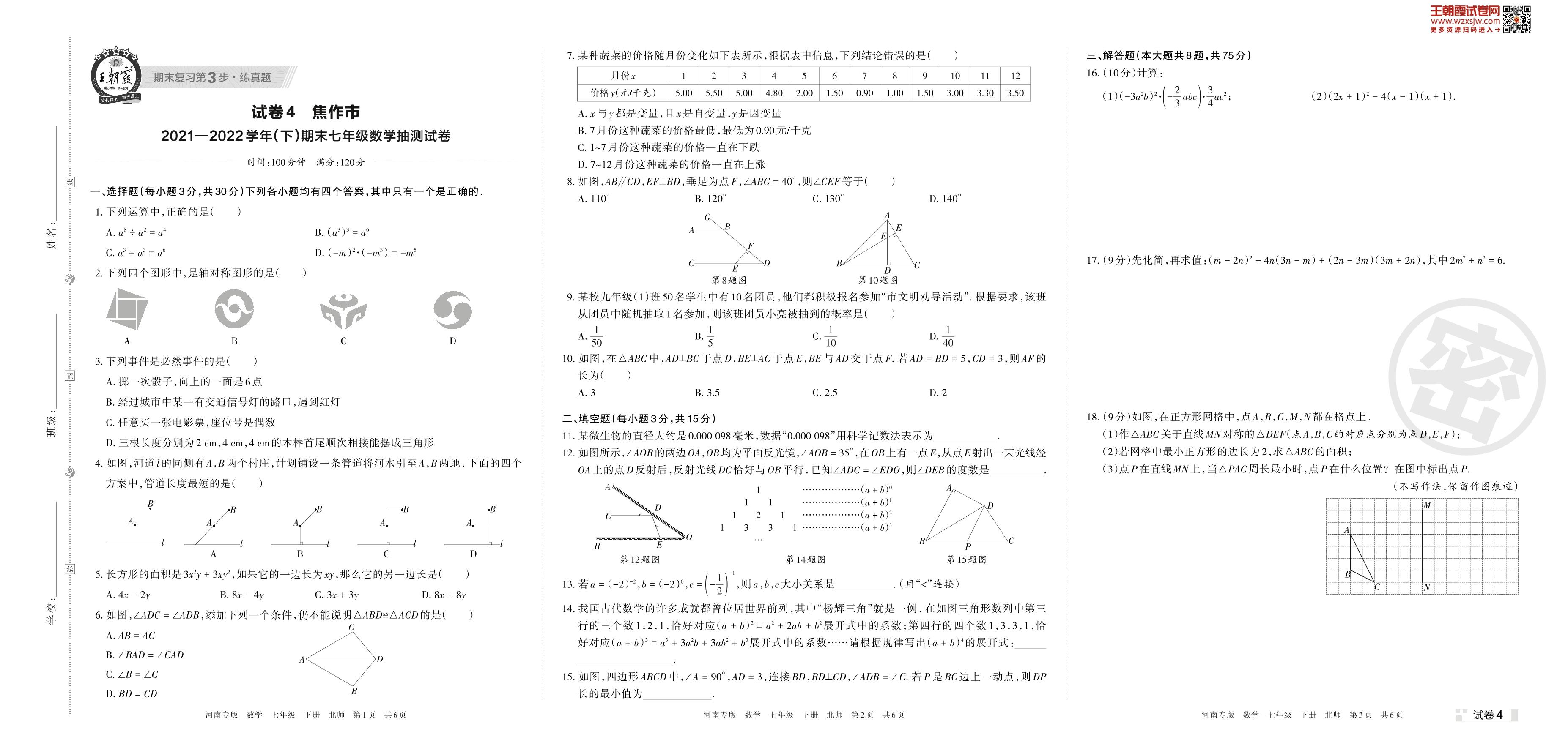 焦作市2021—2022学年(下)期末七年级数学抽测试卷(北师版)【4】