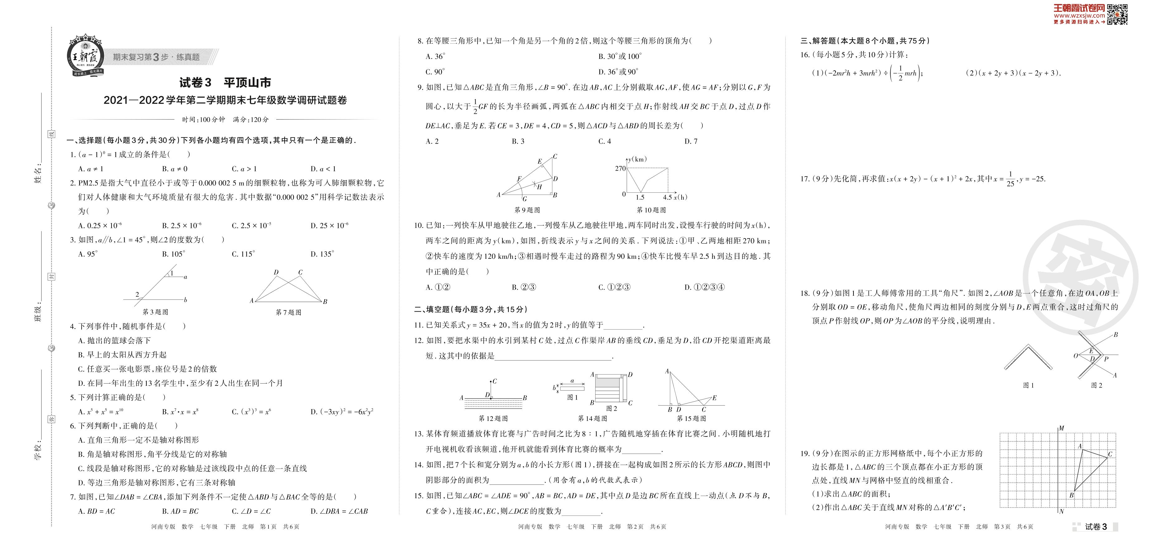 平顶山市2021—2022学年第二学期期末七年级数学调研试题卷(北师版)【3】