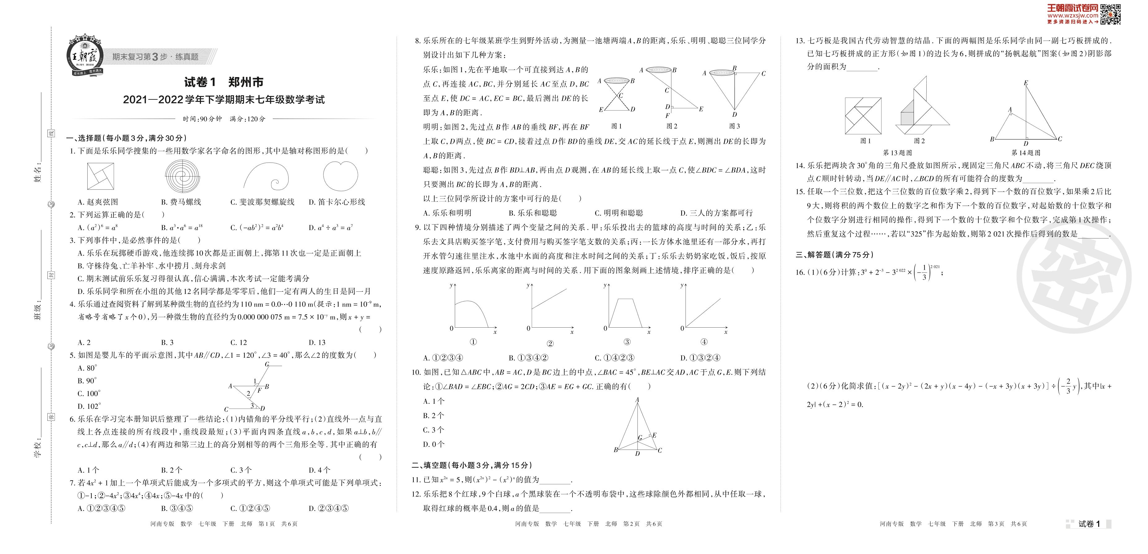 郑州市2021—2022学年下学期期末七年级数学考试(北师版)【1】