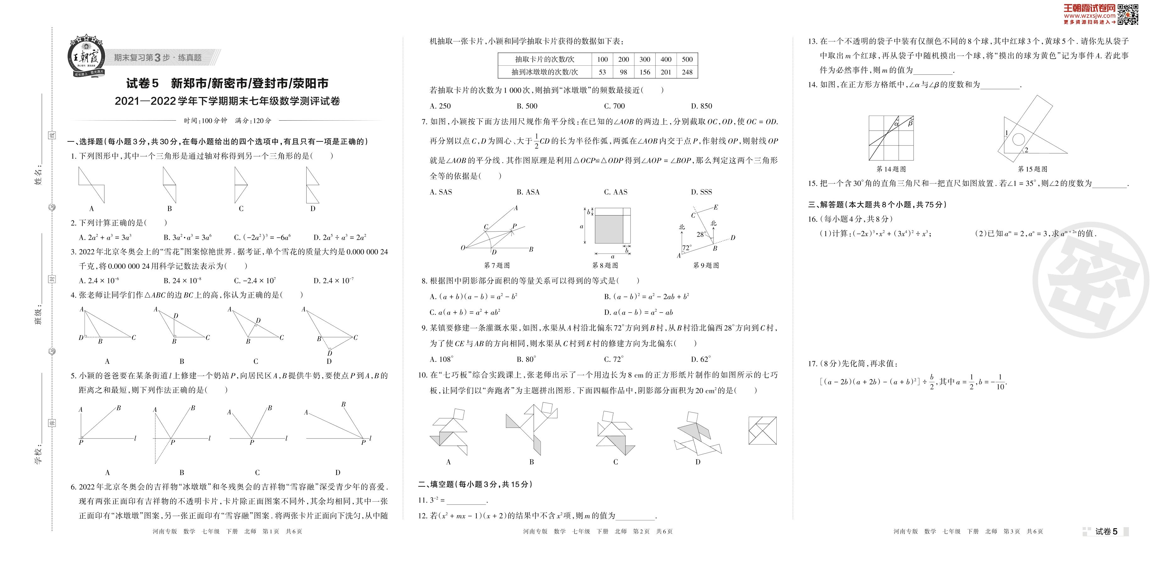 新郑市、新密市、登封市、荥阳市2021—2022学年下学期期末七年级数学测评试卷(北师版)【5】