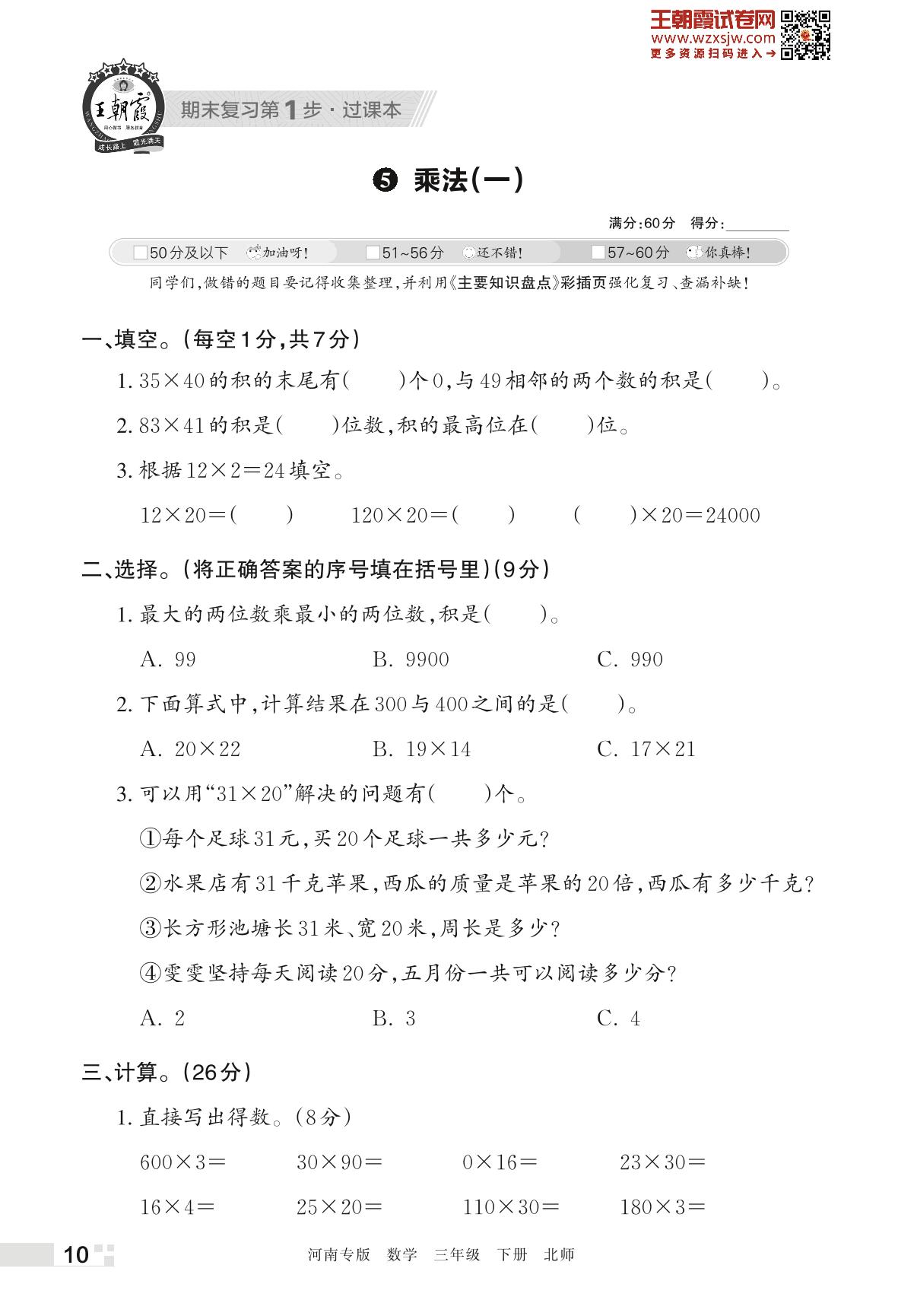 王朝霞期末过课本——5 乘法(一)三年级下册数学(北师版)_R230425155831206