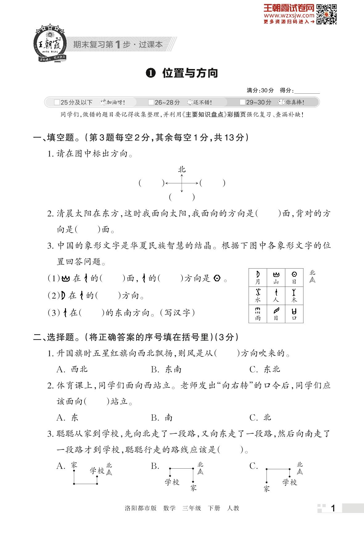 王朝霞期末过课本——1 位置与方向三年级下册数学(人教版)_R230425162332527