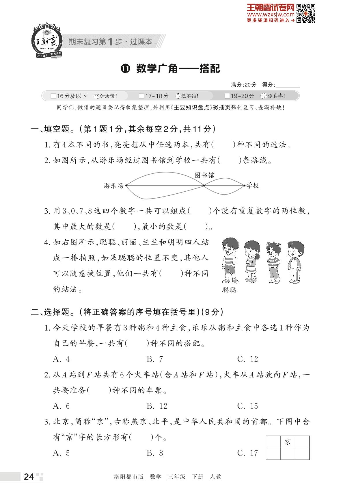 王朝霞期末过课本——11 数学广角:搭配三年级下册数学(人教版)_R230425162332297