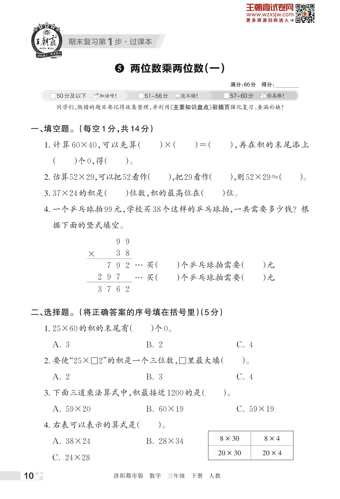 王朝霞期末过课本——5 两位数乘两位数(一)三年级下册数学(人教版)_R230425162332228