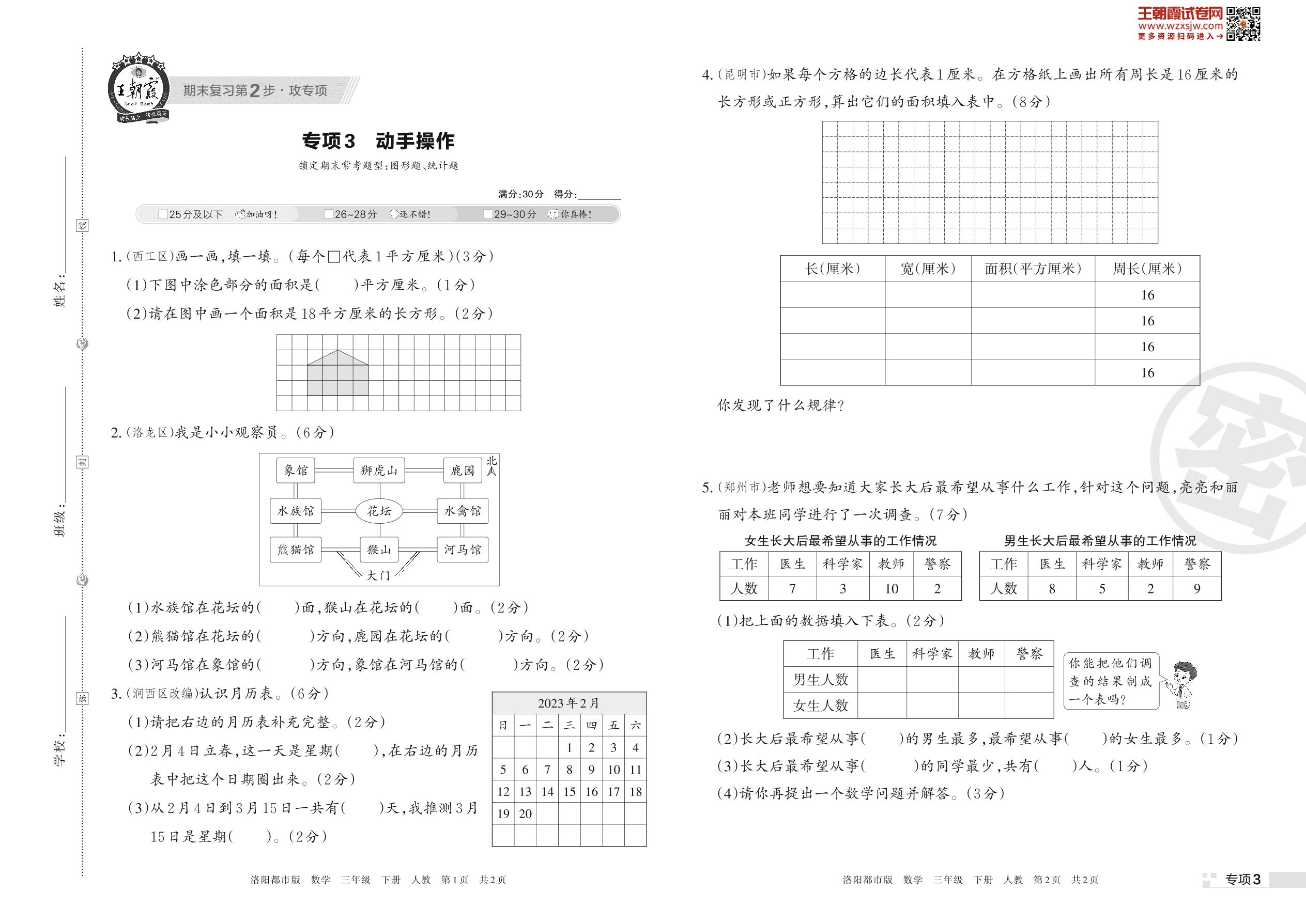 王朝霞期末专项卷——动手操作三年级下册数学(人教版)_R230425162333396【3】
